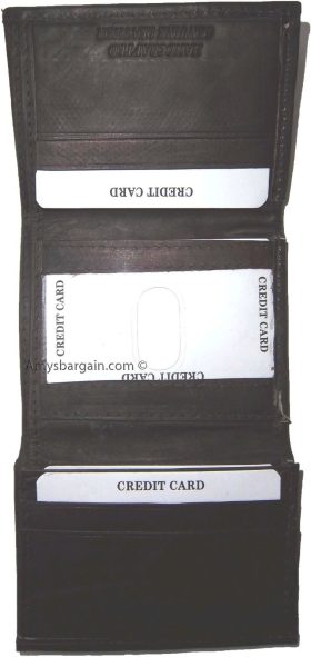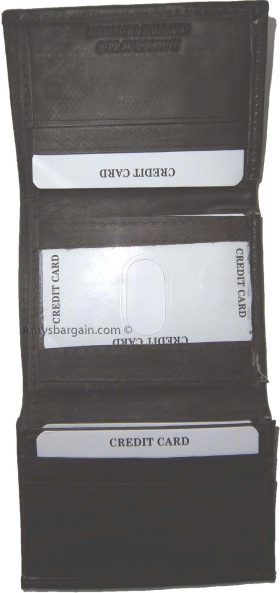 Description:This uniquely styled top grain leather and sued lined interior trifold wallet can make a great gift item. Or, treat yourself to it.Item Details: