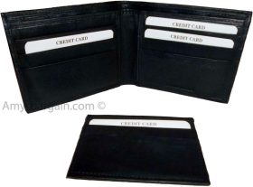Lot of 4 Men's Soft Leather Black billfold Wallet 9 Credit Card 2 ID new walllet