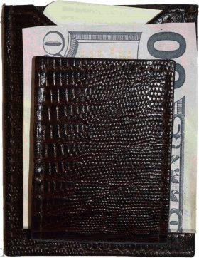 - Item: Lizard skin printed leather money clip.