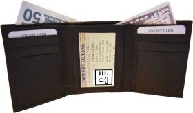 Description:This man's soft calf skin leather wallet would make a great gift for that special someone that has it all, or treat yourself to it.This trifold man's wallet is a full size wallet with ID window and 6 card spaces.Act now!Item Details: