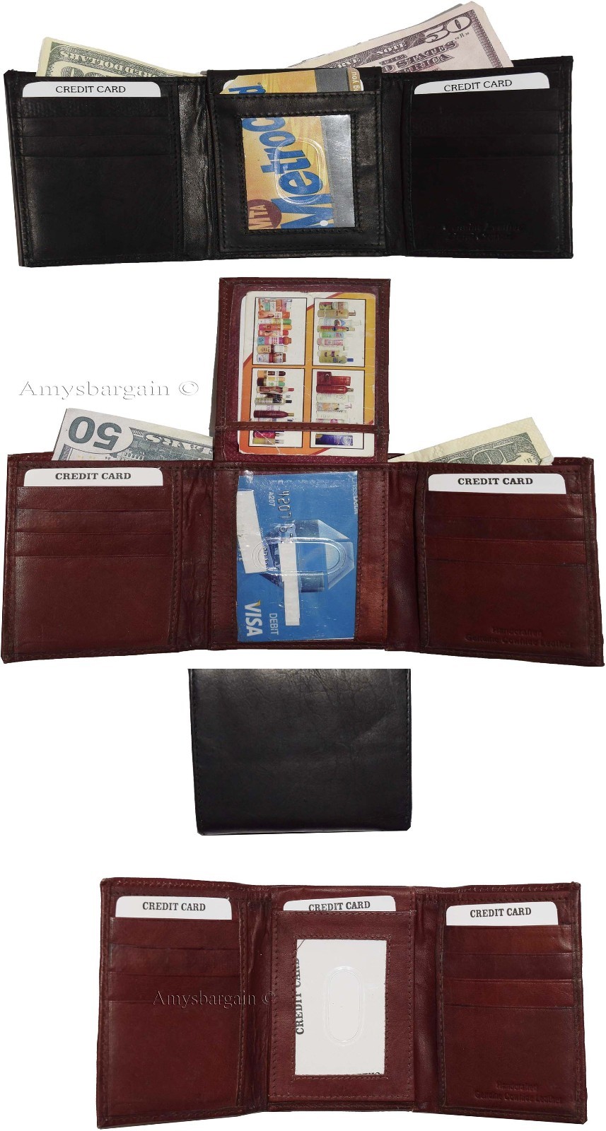 Lot of 4 New Men's Trifold Leather Wallet, 3 ID center piece men's billfold BNWT.