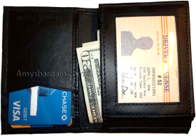Lot of 4 New Style Trifold Leather Man's Black wallet 7 Credit cards ID case NWT