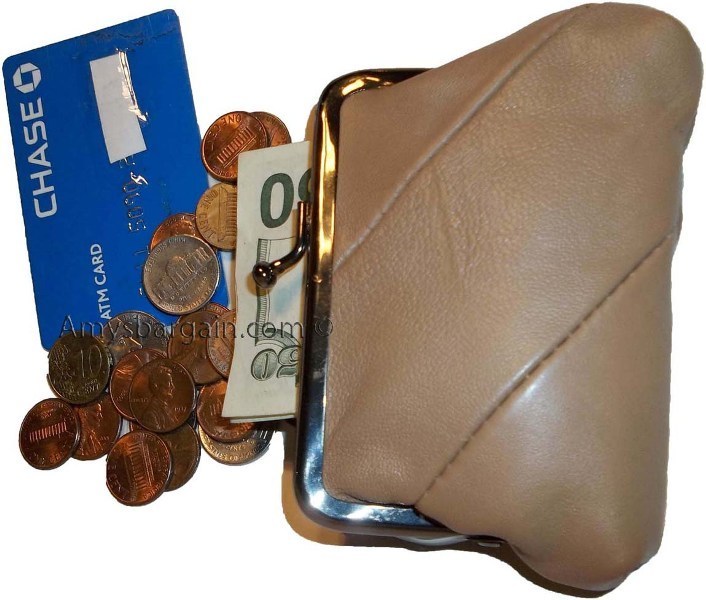 This easy to use metal framed women's leather coin purse is great for carrying lots of coins and some bills, it can fit credit cards or other things as well, it is easy to carry around in the palm of your hand, pocket, handbag, or briefcase.
