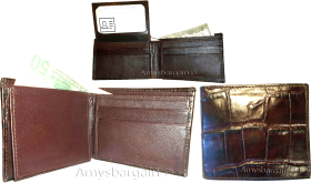 lot of 5 crocodile skin printed leather man's bifold wallet id 2 bill slots new