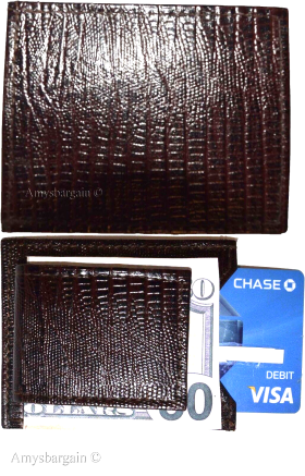 - Item: Lizard skin printed leather money clip.