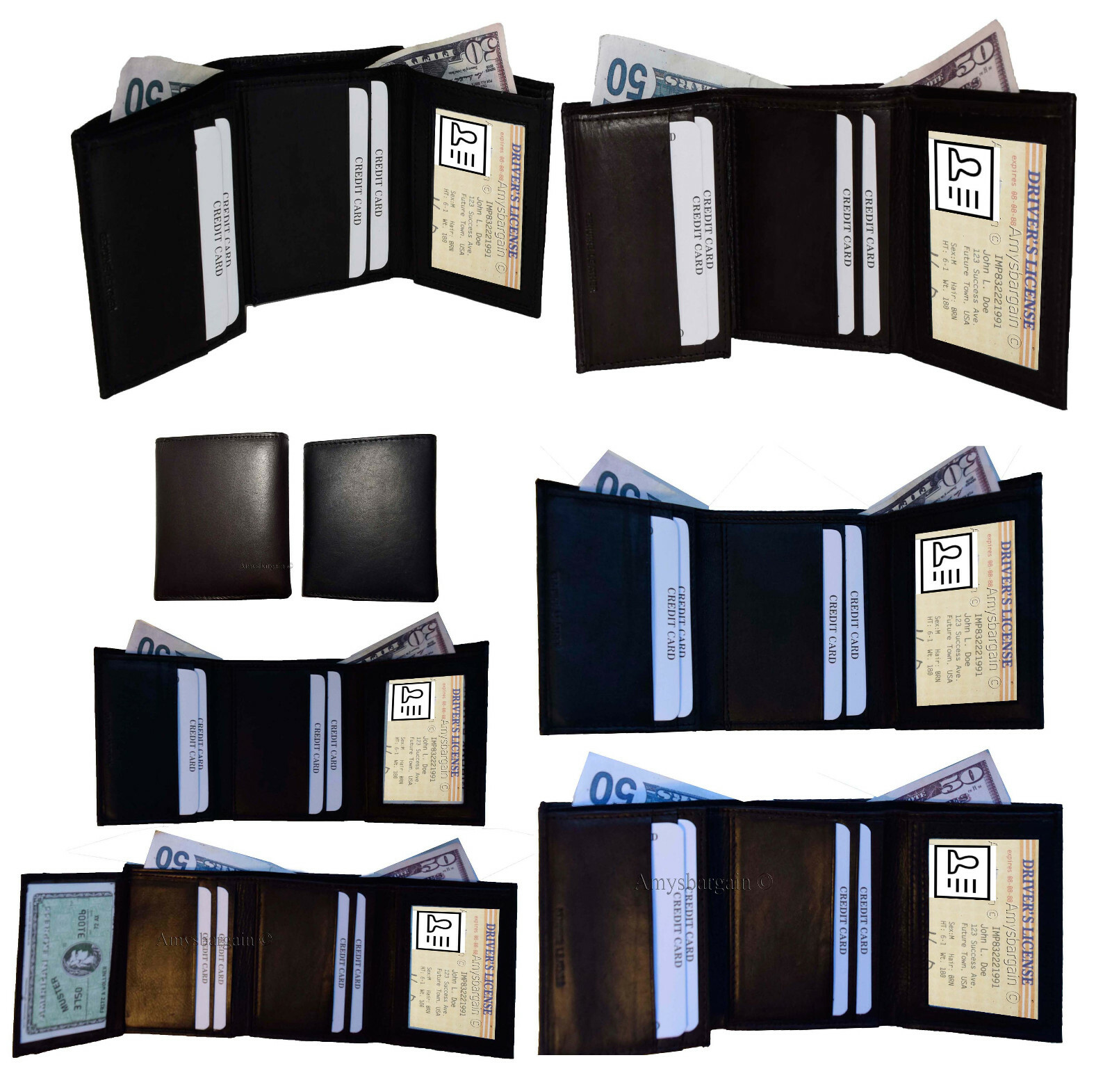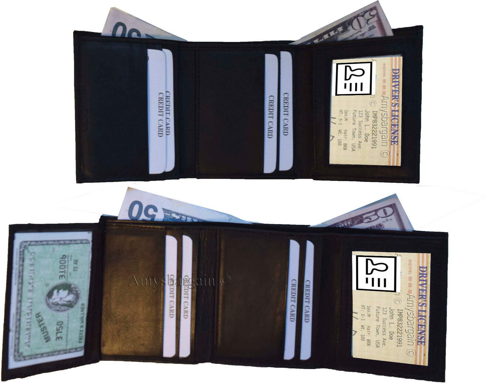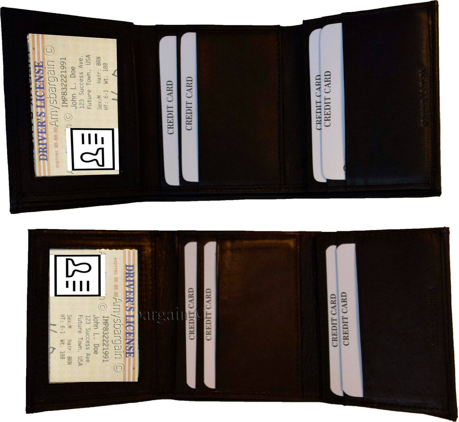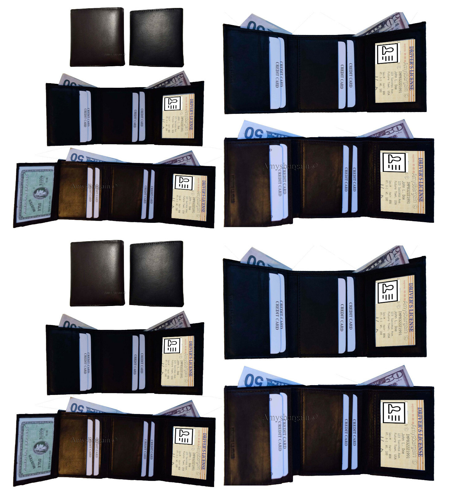 Lot of 5 Man's Trifold wallet genuine calfskin Leather 8 credit card 2 bill slot.