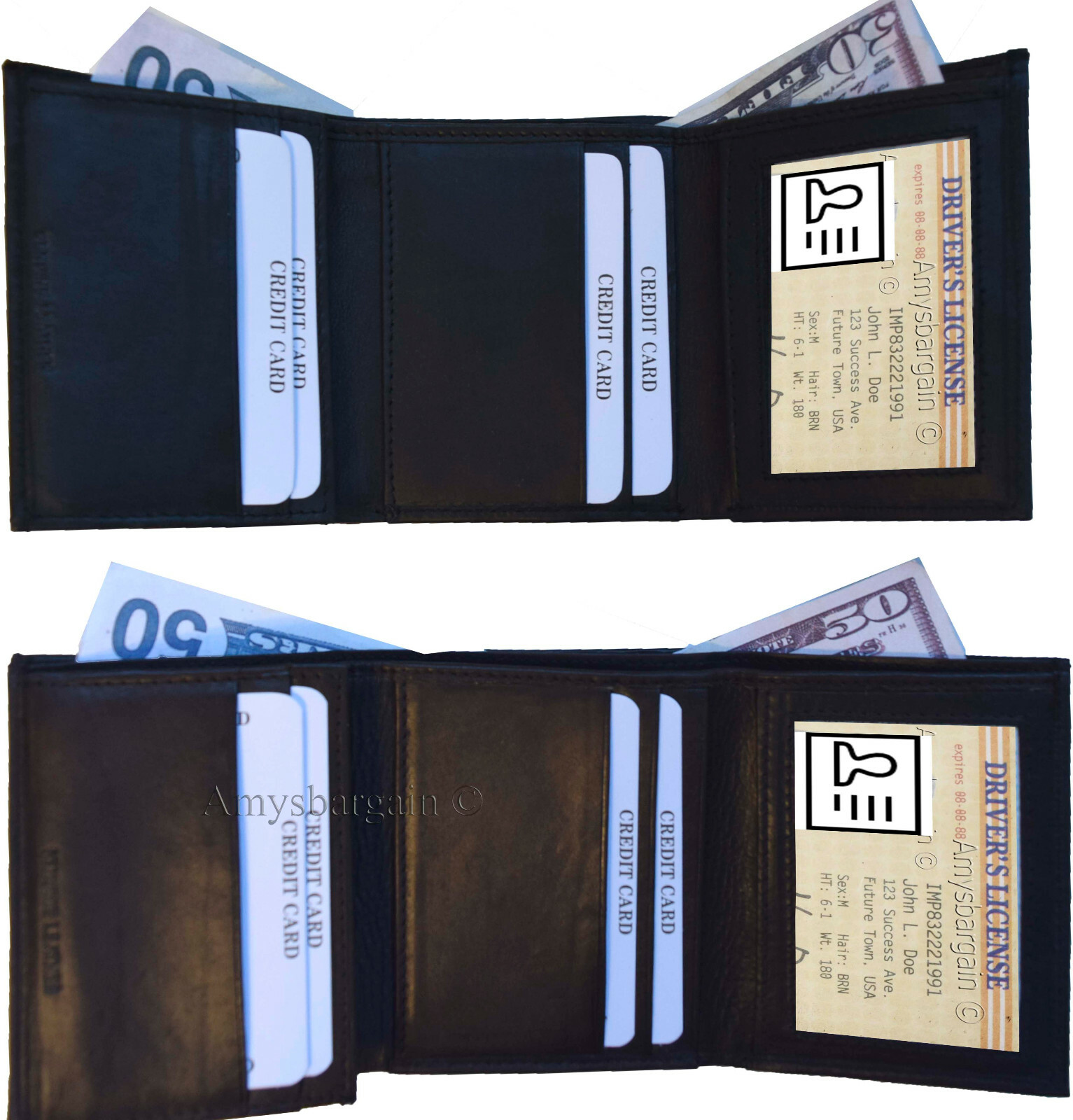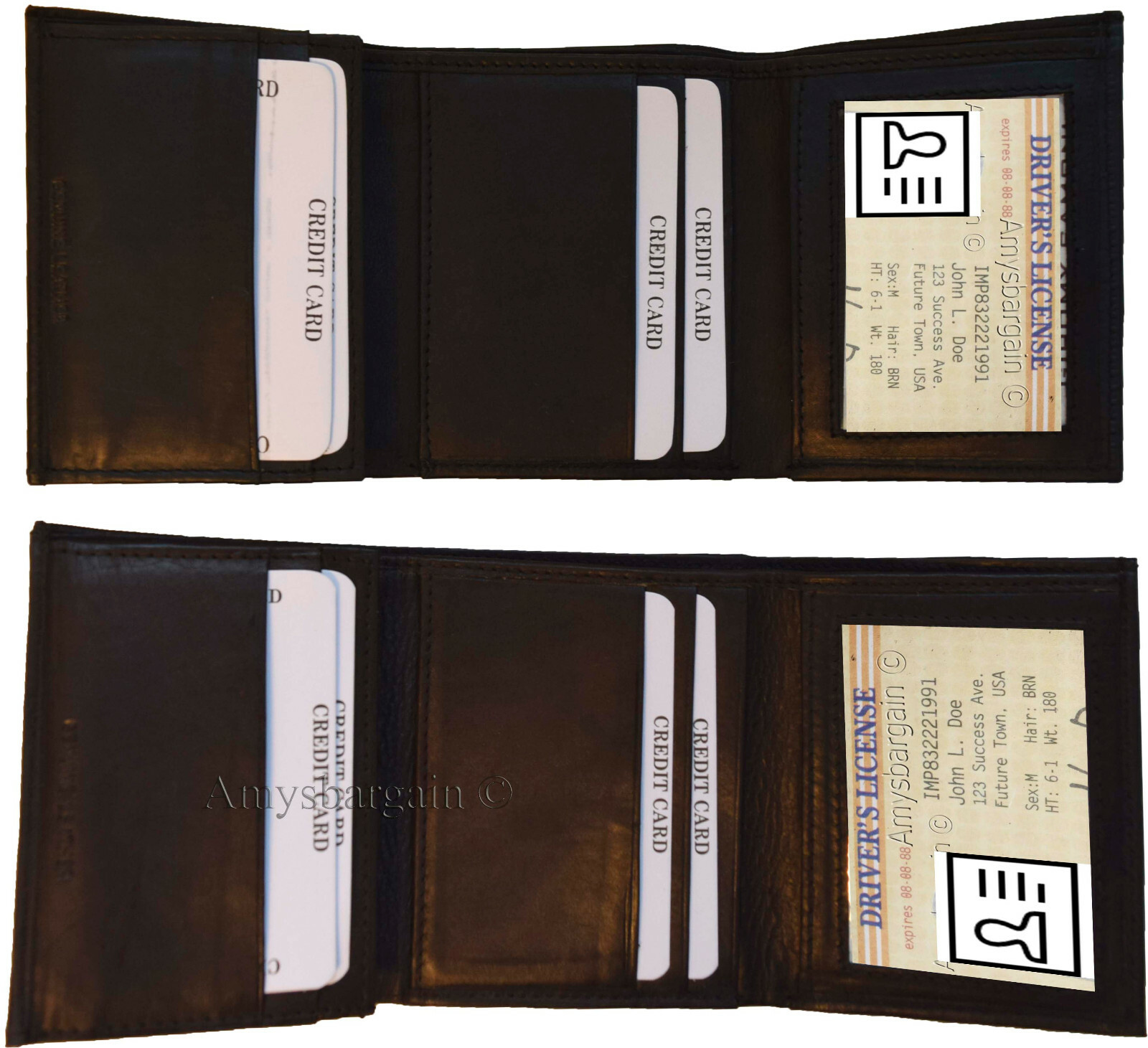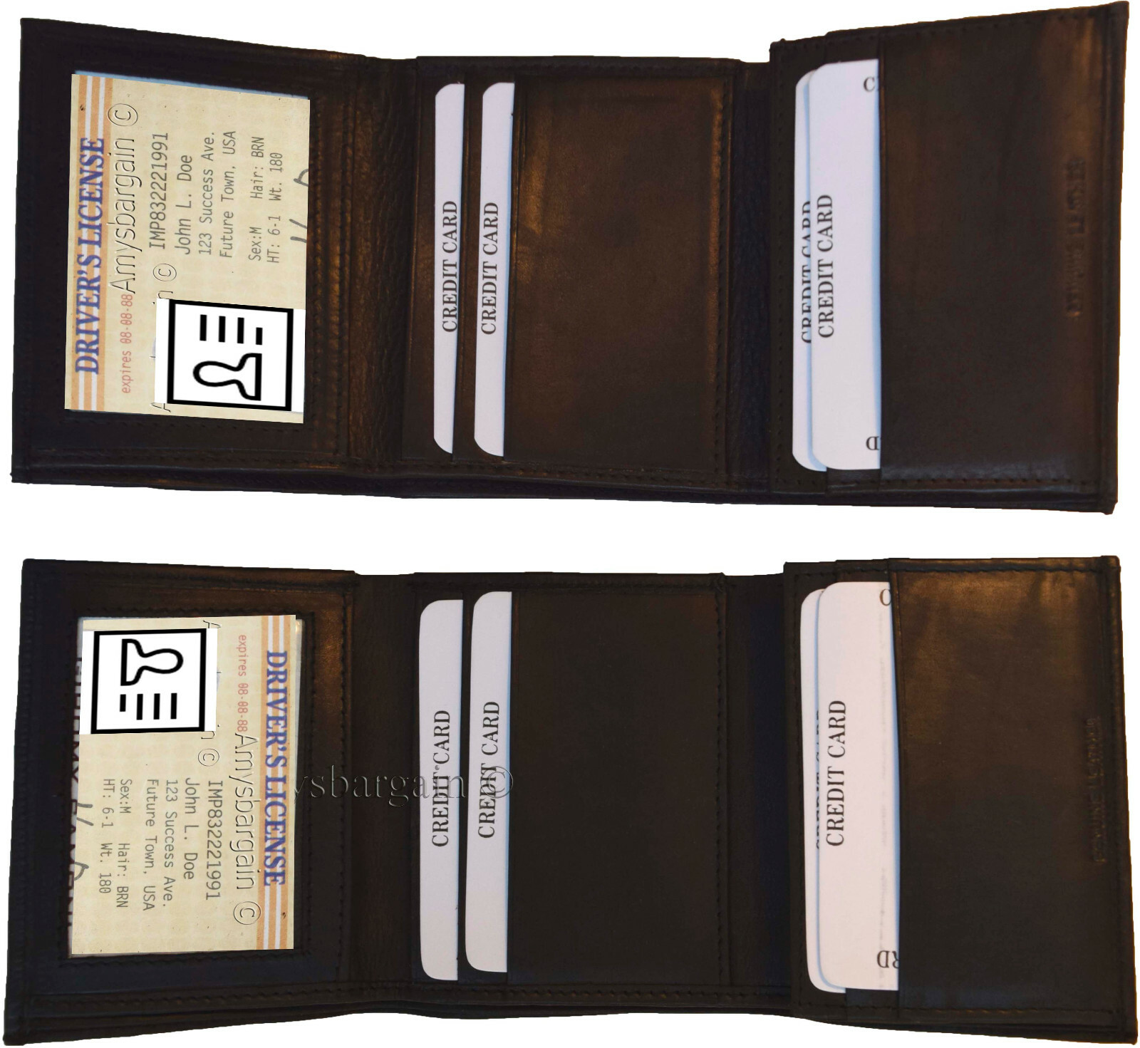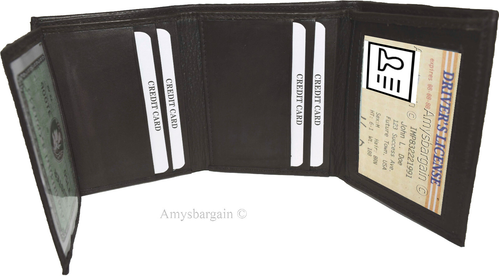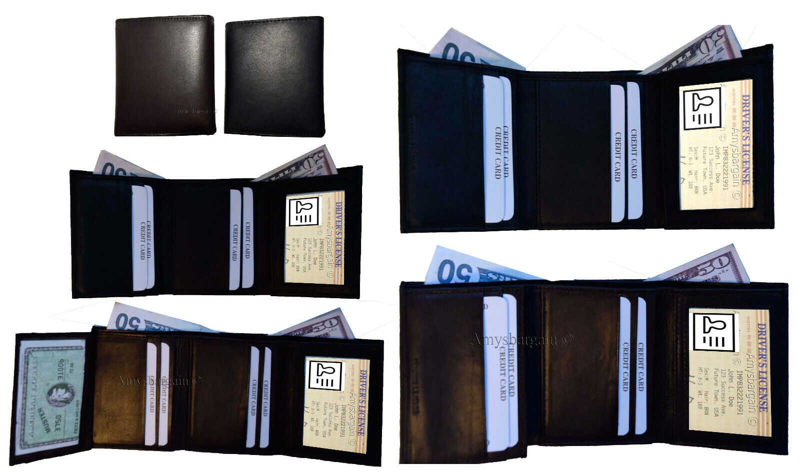 Lot of 5 Man's Trifold wallet genuine calfskin Leather 8 credit card 2 bill slot.