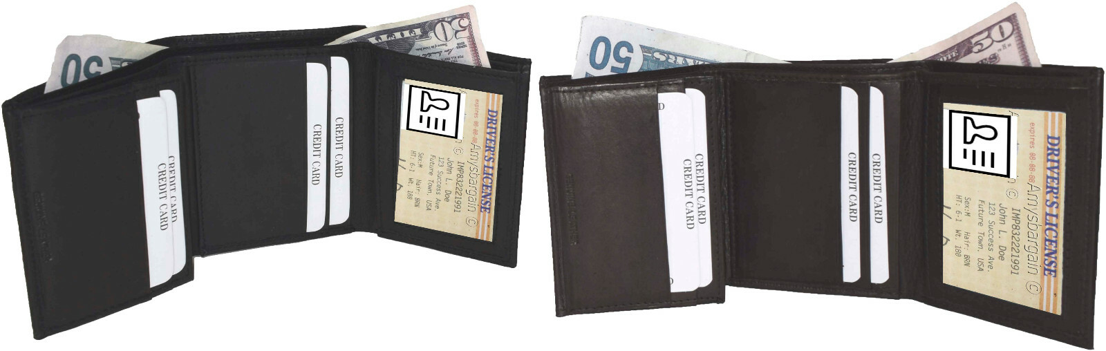 Description:This uniquely styled top grain leather and sued lined interior trifold wallet can make a great gift item. Or, treat yourself to it.Item Details: