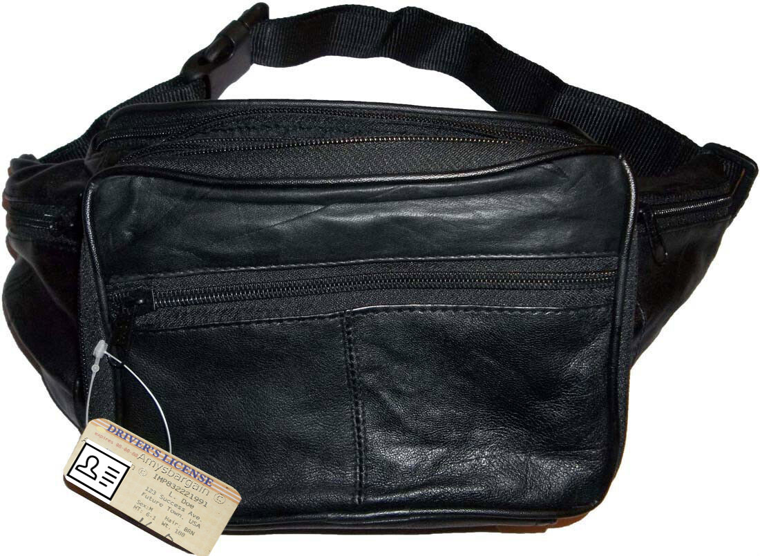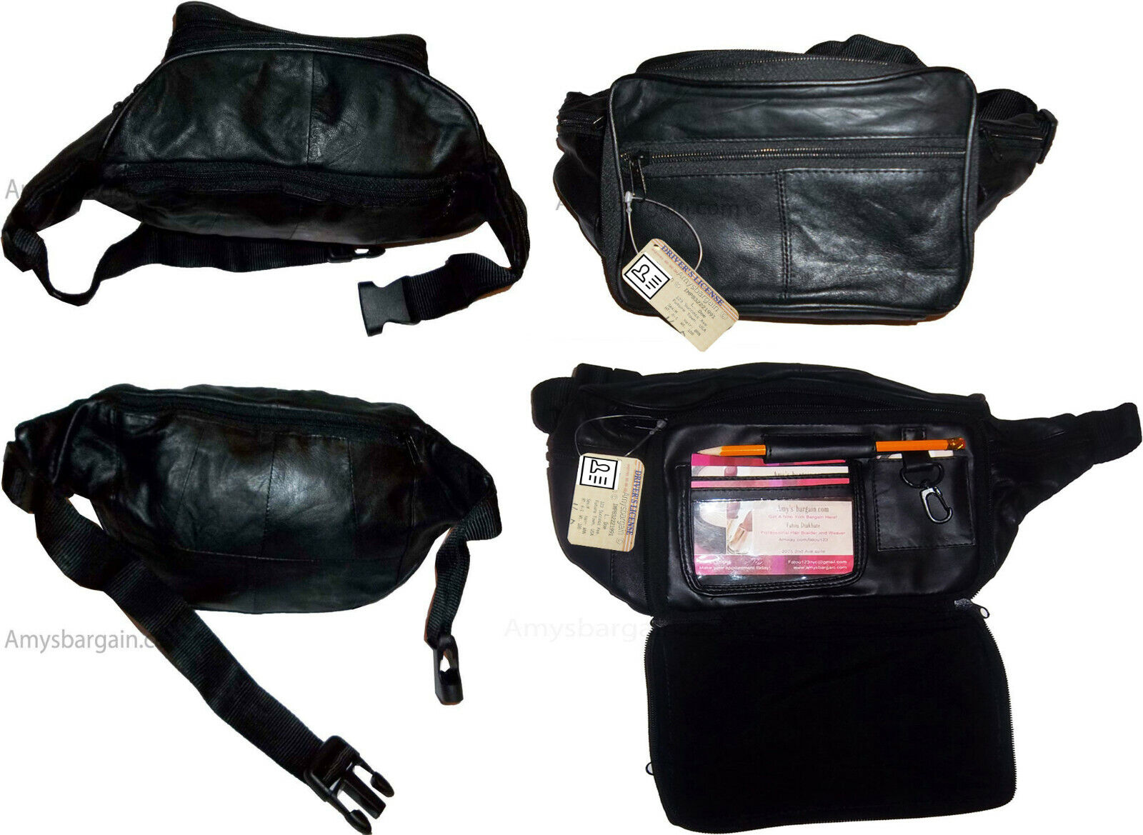 This is a Jumbo size leather waist pouch, it is made out of a very soft top grain lambskin leather, it comes with a multitude of compartments and an adjustable waist strap.