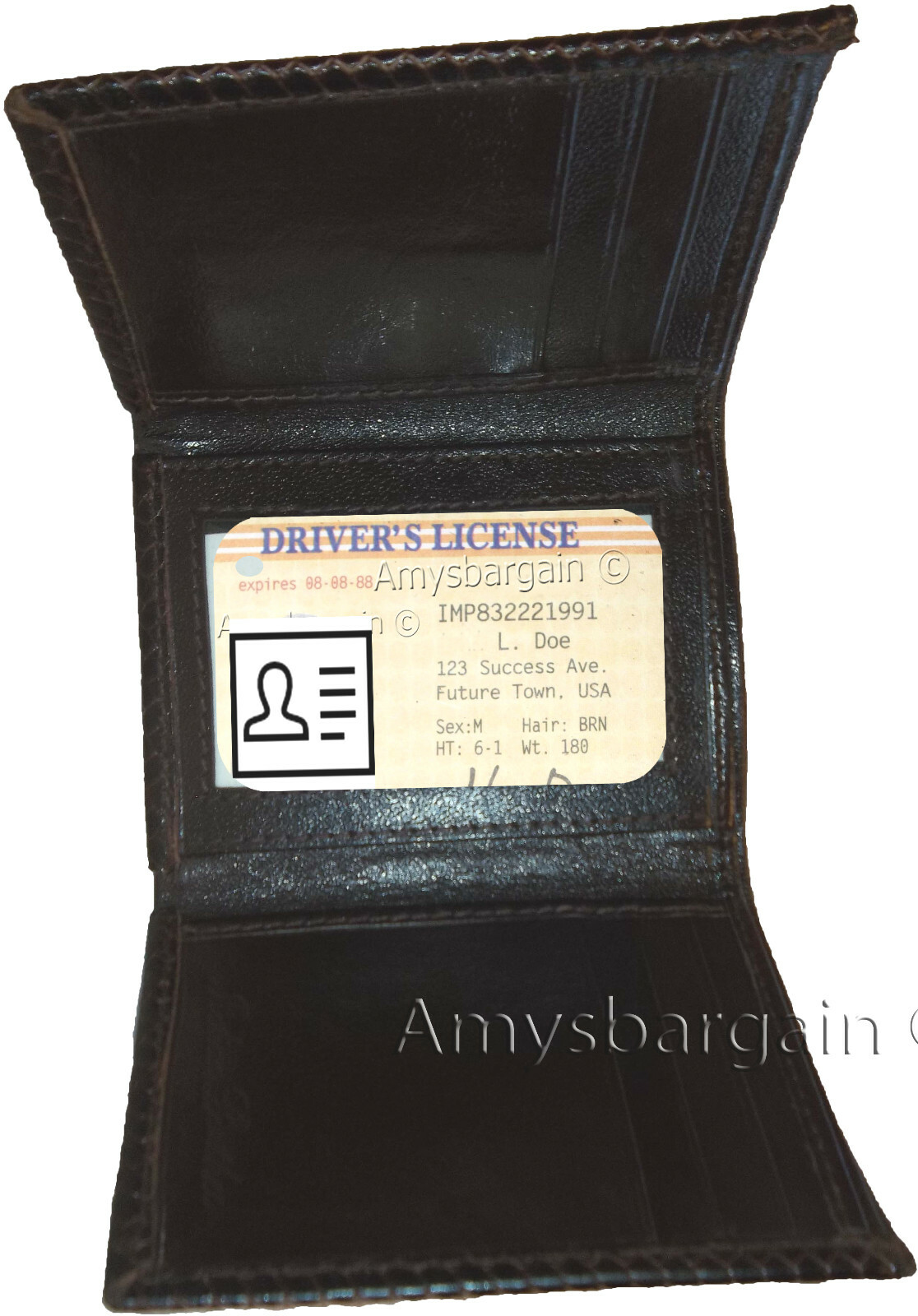 Lot of 6 Italian Style Woven Printed Leather Man's Brown Trifold walletI ID BNWT