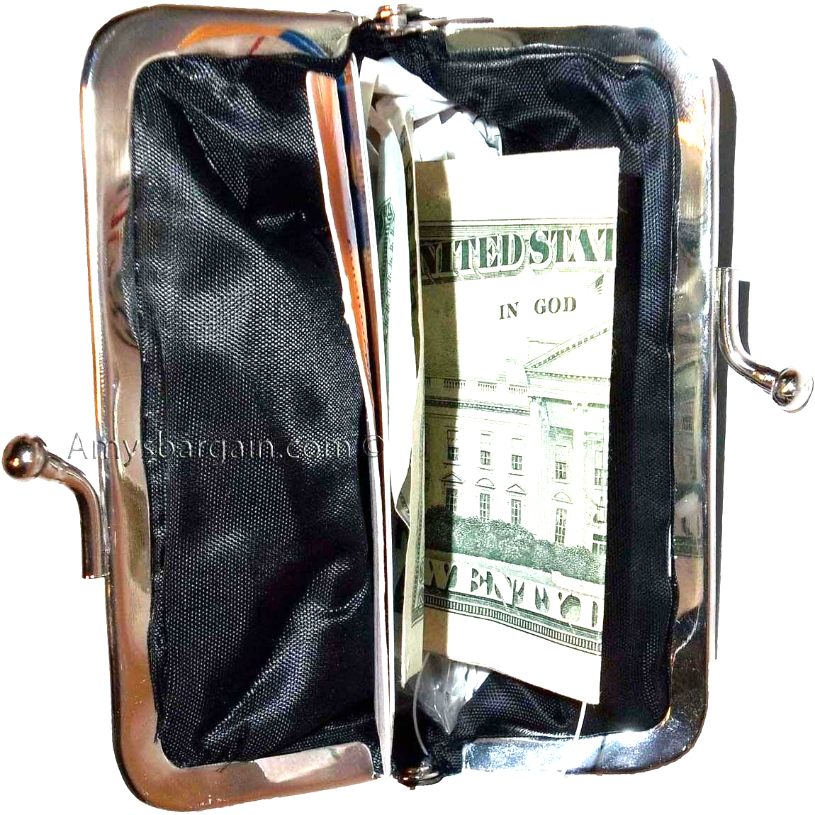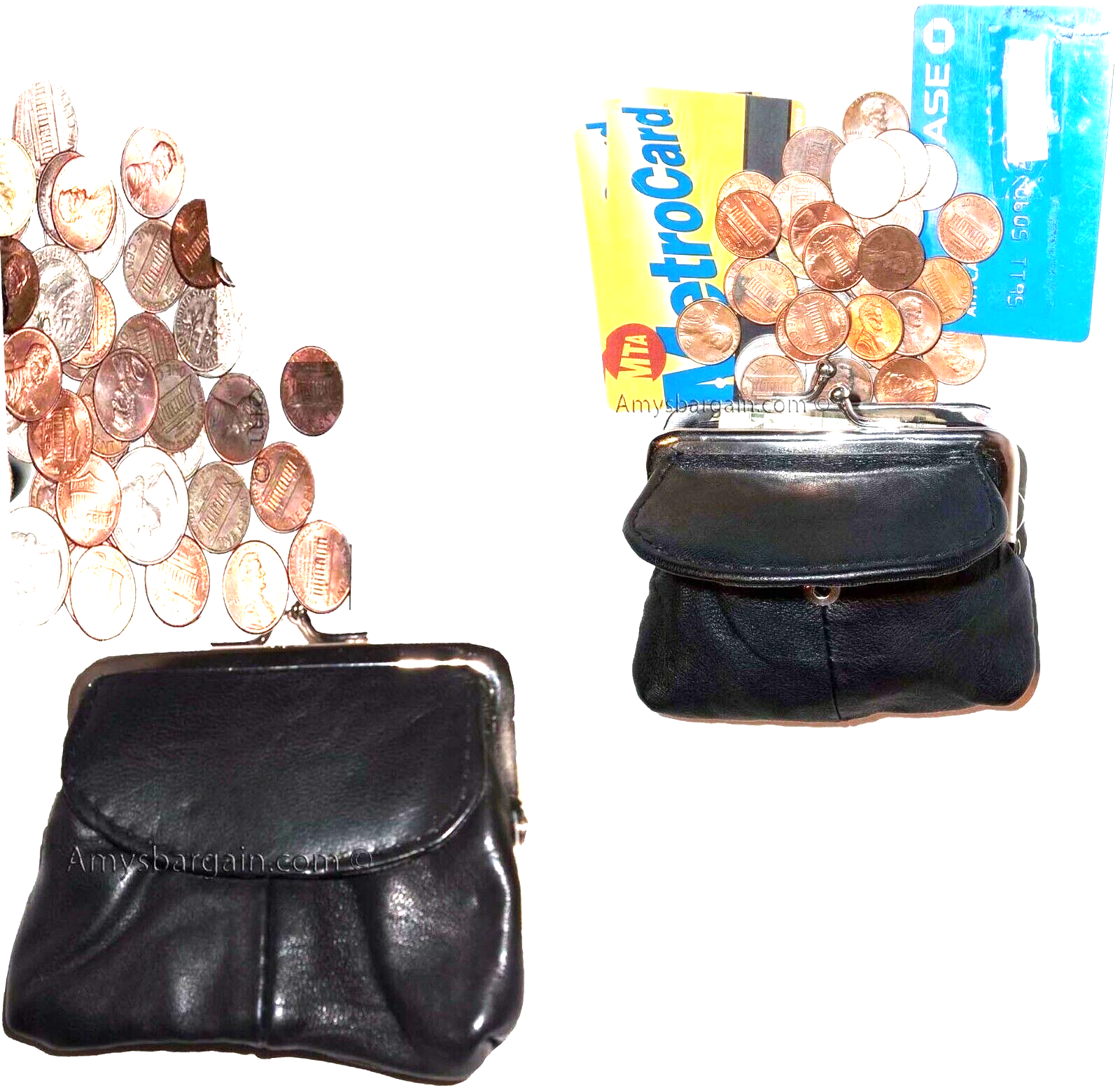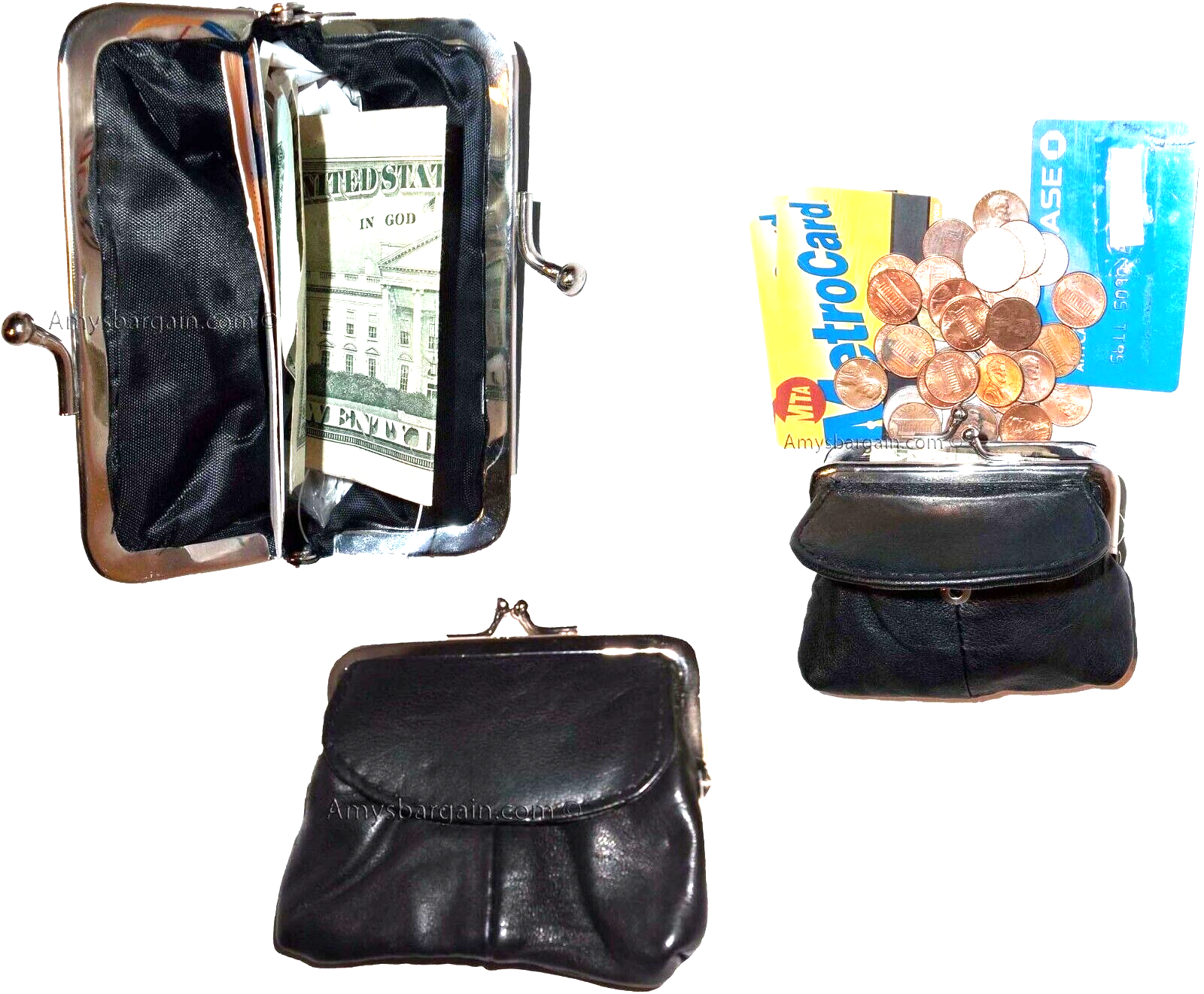 This easy to use metal framed women's leather coin purse is great for carrying lots of coins and some bills, it can fit credit cards or other things as well, it is easy to carry around in the palm of your hand, pocket, handbag, or briefcase.