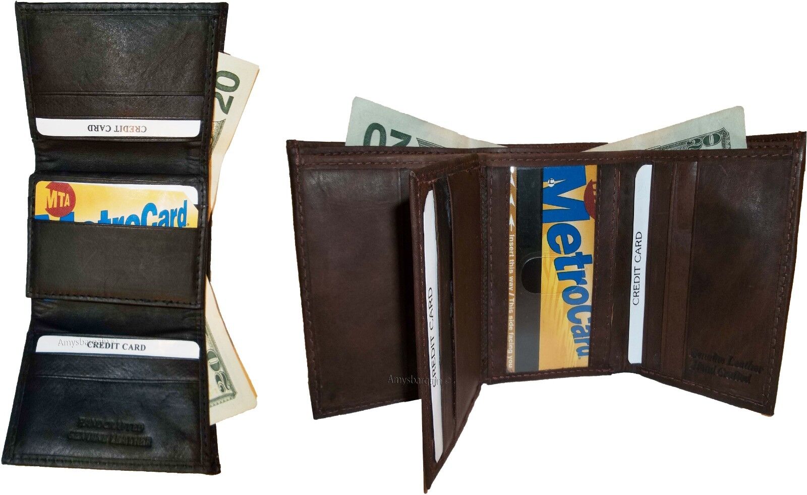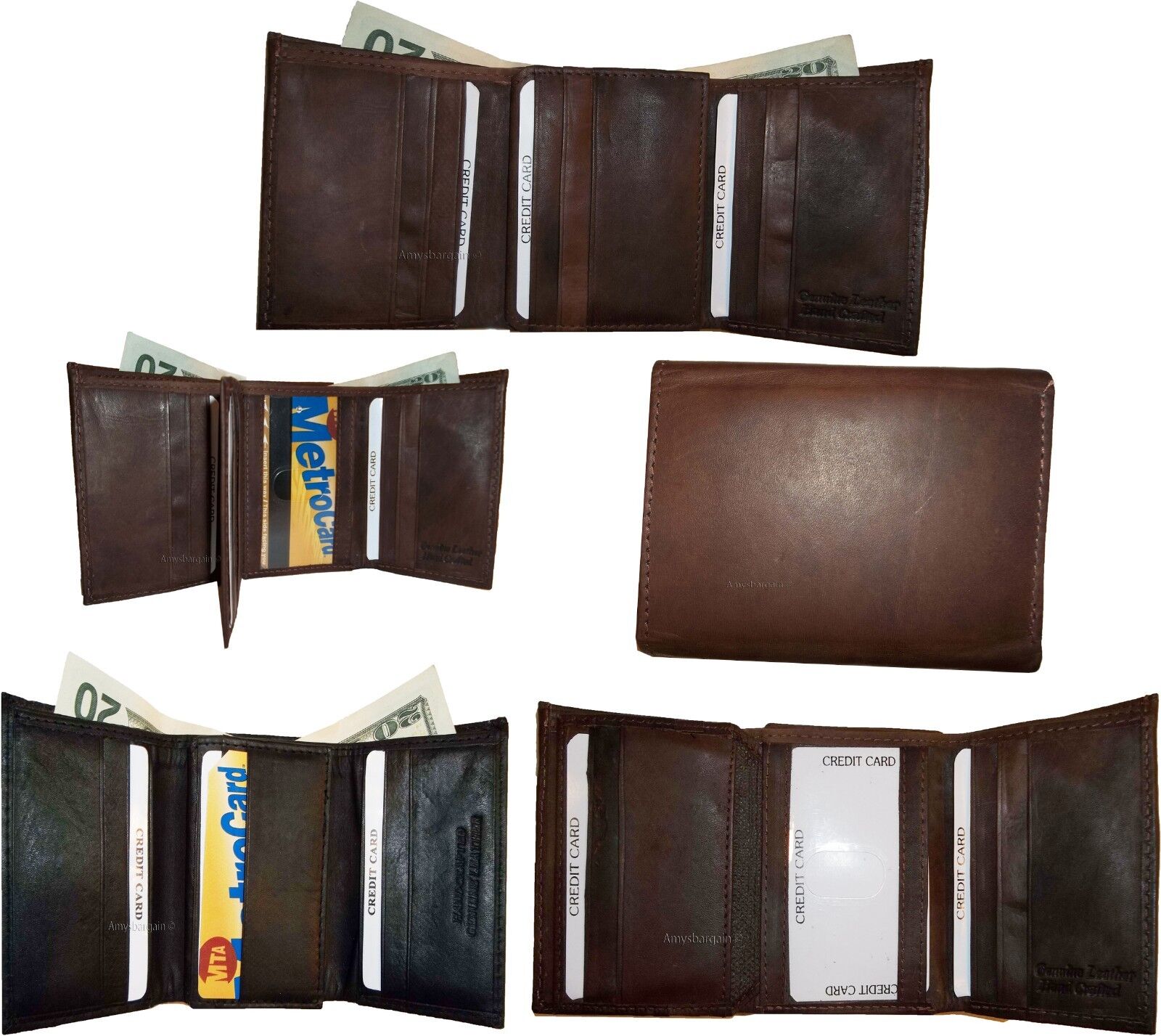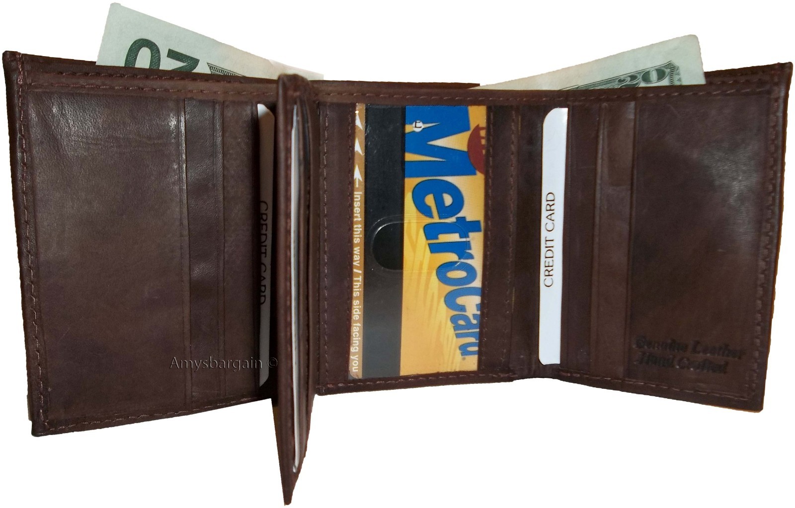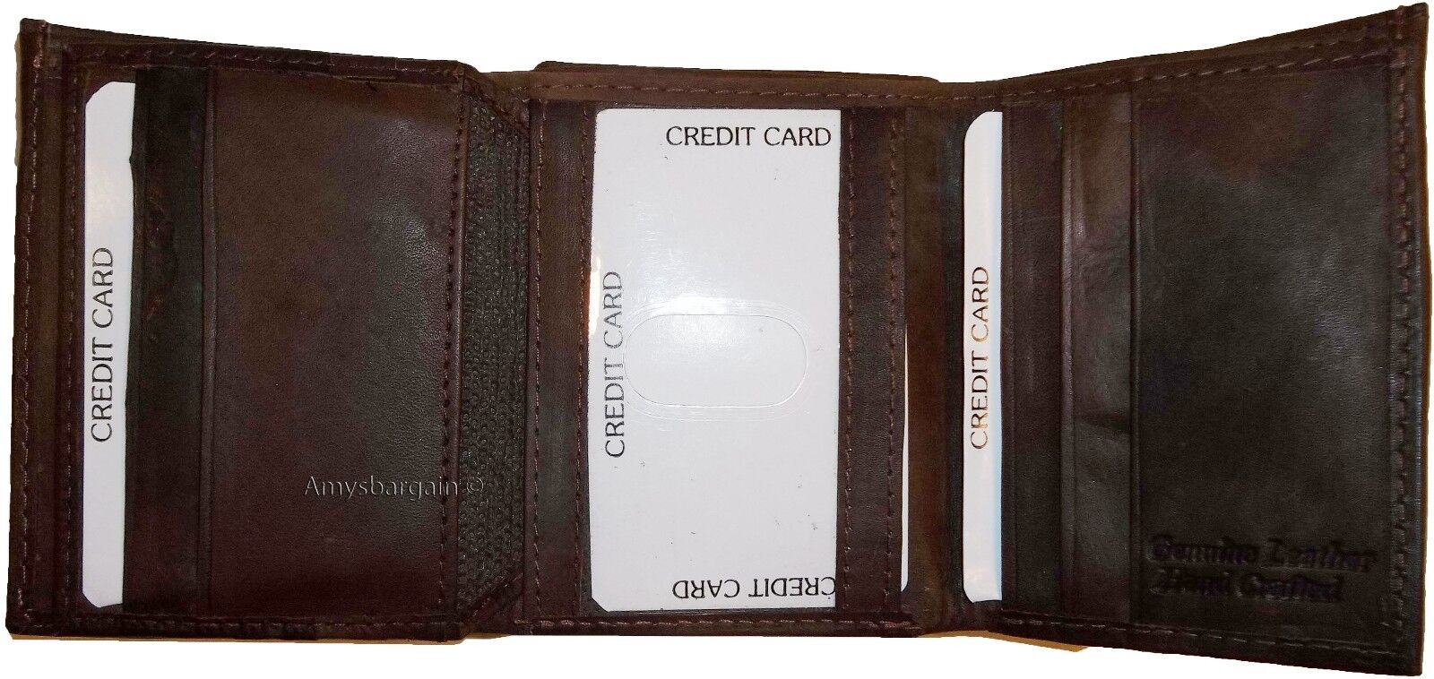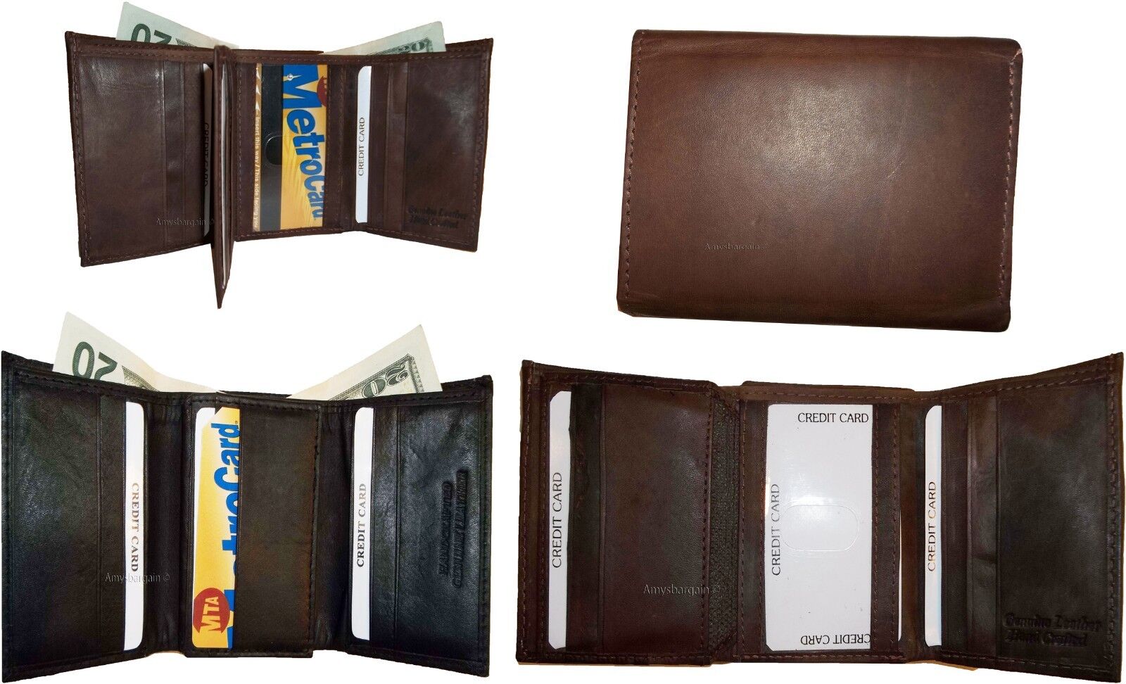 Lot of 6 Man's leather trifold wallet Brown tri-fold leather wallet 2 bill slots