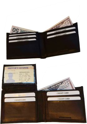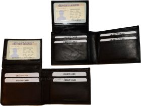 Description:This man's soft calfskin leather wallet would make a great gift for that special someone that has it all, or treat yourself to it.This man's wallet is a full size wallet with a flap section that has a built in ID window and 3 card spaces.Item Details: