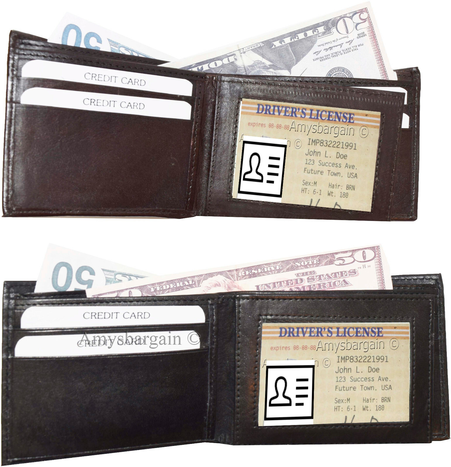 Description:Buy the lot and save a lot!This is a fine quality leather men's wallet with a hidden zip billfold pocket. It would make a great gift item. Or, just treat yourselves to its qualities.It has an ID window, 6 card spaces and 3 billfold compartments.Act now! it will not last! at this price.Item Details:
