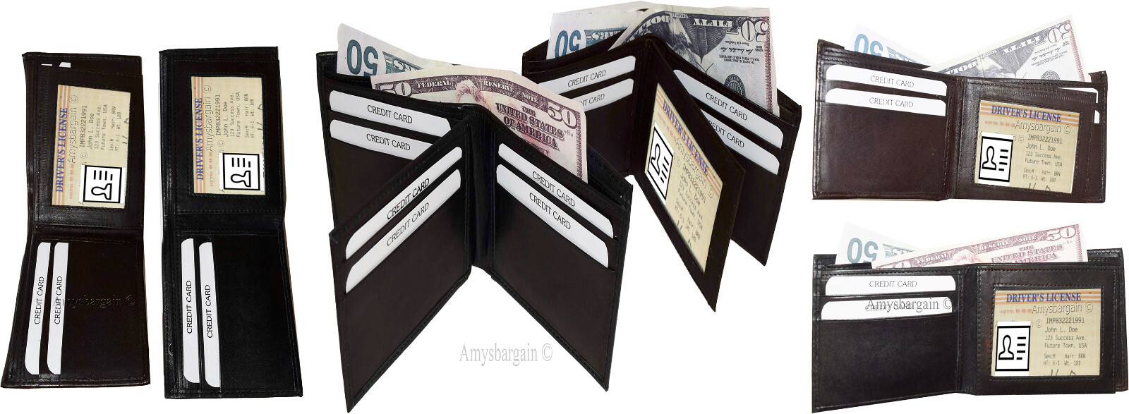 Lot of 6 men's bifold leather wallet 3 bill slots id case change case brand new.