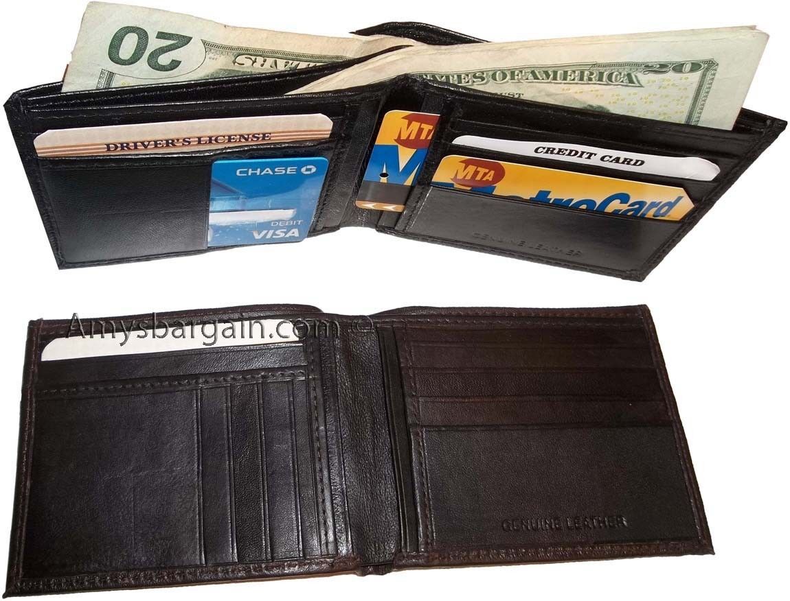 Descriptions:Buy the lot and save a lot!This is a new style well-made leather wallet. It would make a great gift idea for seekers, or, treat yourselves to it. This man's wallet has 14 card spaces and 2 billfold compartments.Item Details: