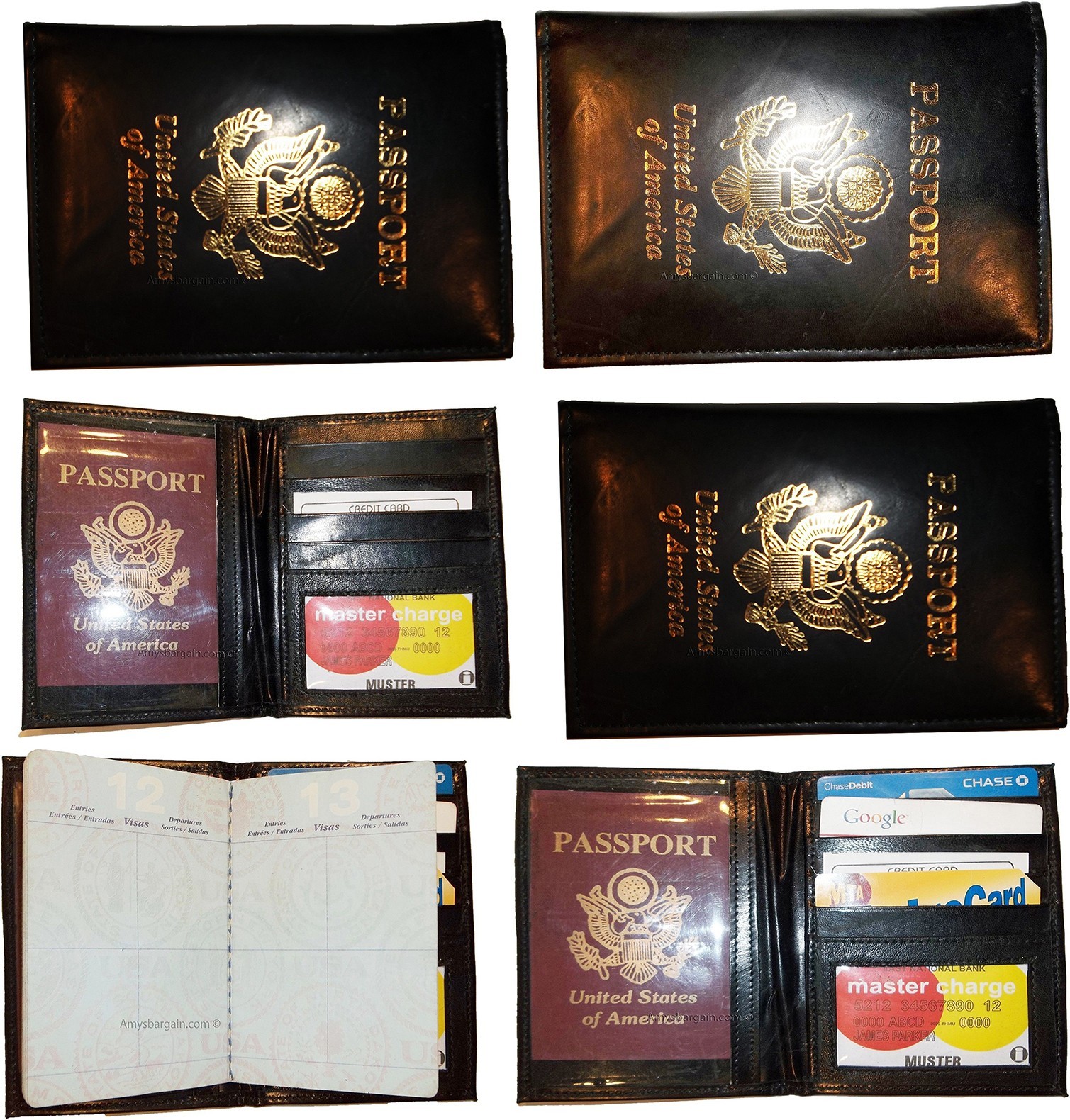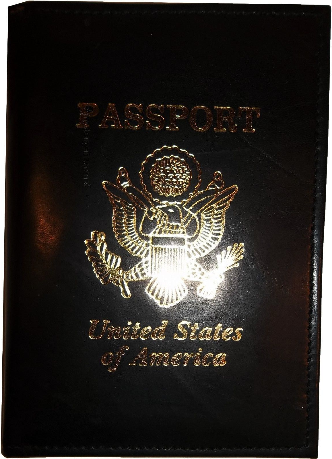 This is a lambskin leather passport case the USA eagle monogrammed in the front with realistic gold foiled print. It has 4 built in credit card spaces and a transparent ID window.