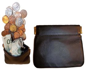 This strong hard squeeze easy to use metal framed women and men's leather coin purse is great for carrying coins and some bills or other things. It is easy to carry around in your pocket, handbag or briefcase.