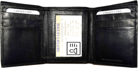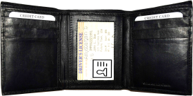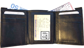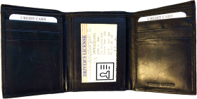 Description:This man's soft calf skin leather wallet would make a great gift for that special someone that has it all, or treat yourself to it.This trifold man's wallet is a full size wallet with ID window and 6 card spaces.Act now!Item Details:
