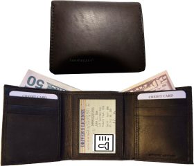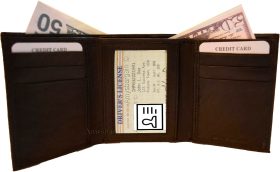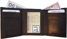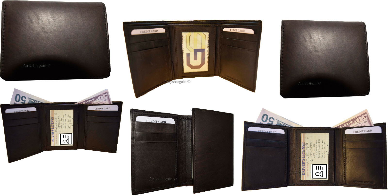 Lot of 6 New Men's Brown leather Trifold wallet 6 credit cards 2 bill slots