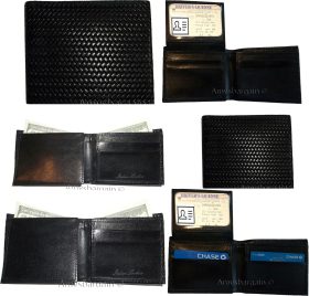 Description:This is a very stylish Italian style woven printed leather mens wallet with an easy-in-out ID case. It has 2 billfolds and 6 card slots. This wallet would make a great gift for that special someone that has it all, or treat yourselves to its qualities.It has an easy in-and-out ID window, 6 card spaces and 2 lined billfold pockets.Item Details: