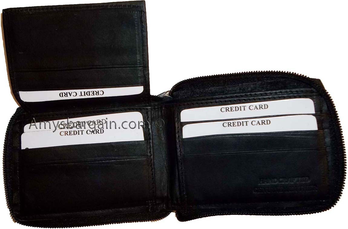 lot of 6 new zip around men's leather wallet new black wallet 9 credit + ID card.Description:Buy the lot and save a lot!Contact us about wholesale prices.This is a suede lined interior men's zip around wallet. It would make a great gift for that special someone. Or treat yourself to it.Item Details: