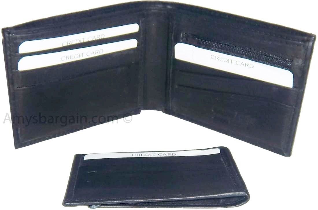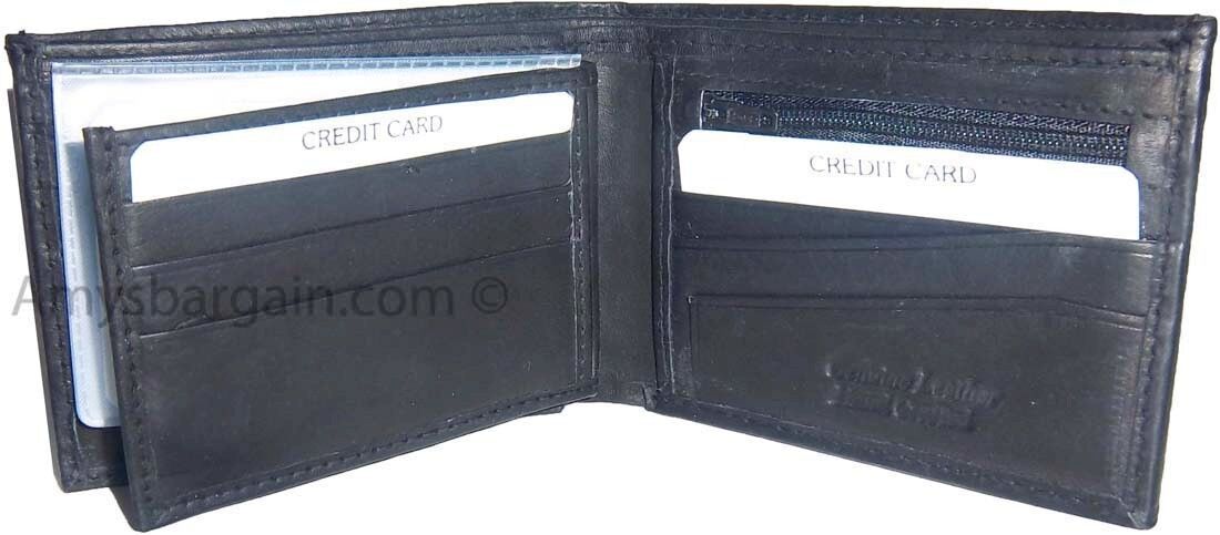 Description:This leather men's bi-fold wallet has 6 card spaces, a mini zip pocket and 2 suede lined billfolds.Act now! They won't last.Item Details: