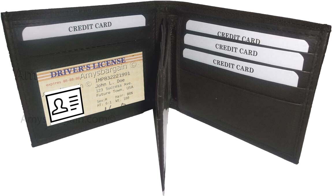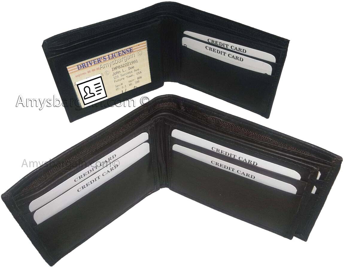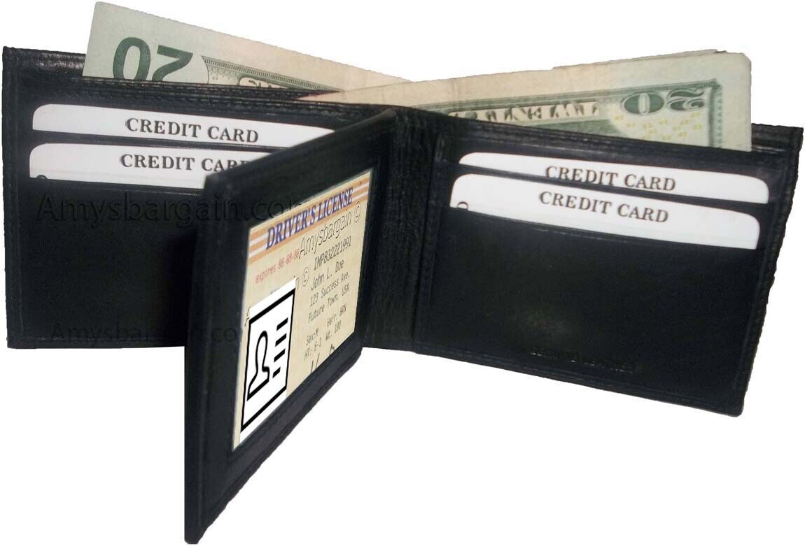 man's leather bifold wallet id case 3 bill spaces 6 credit cards calfskin wallet.