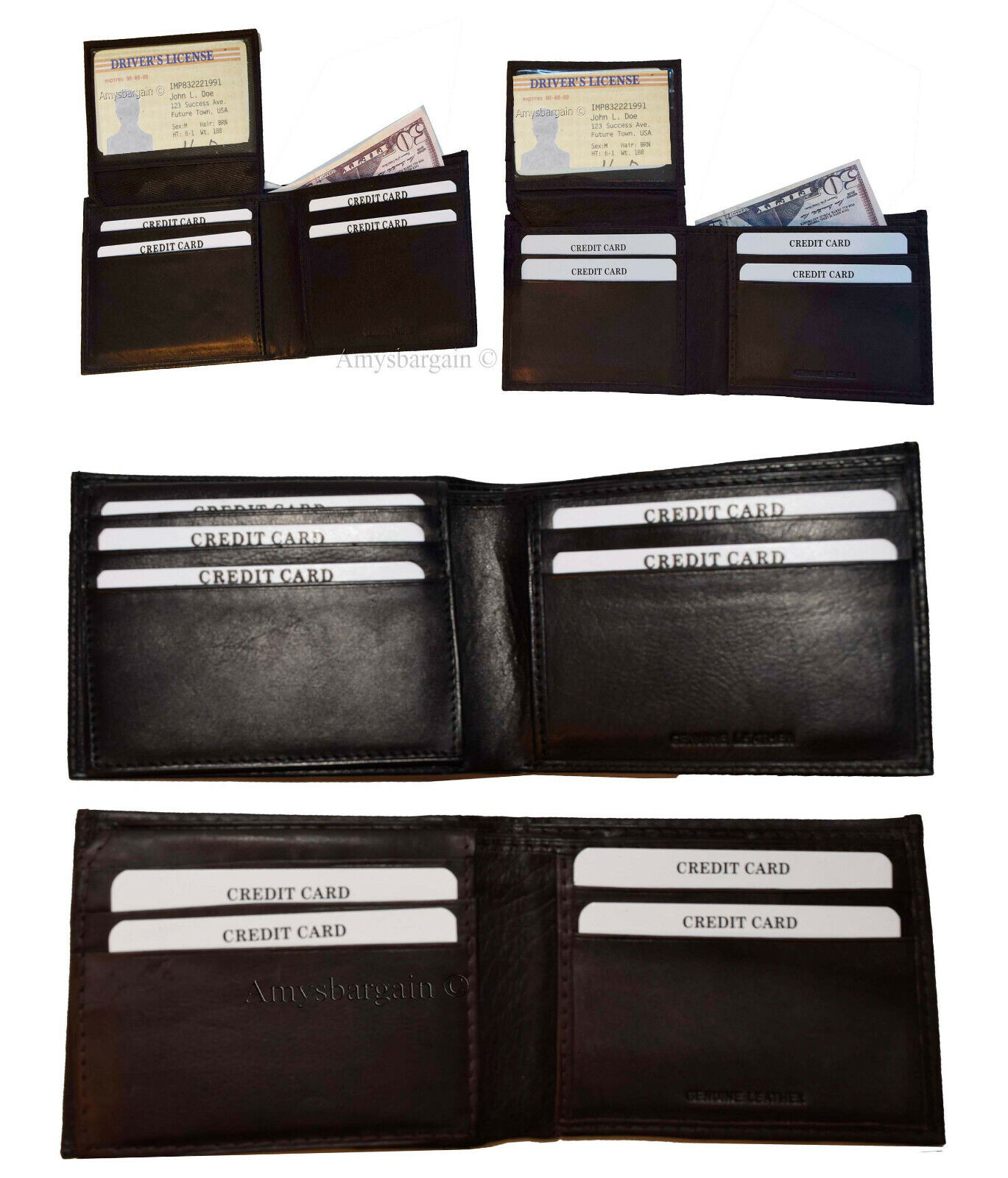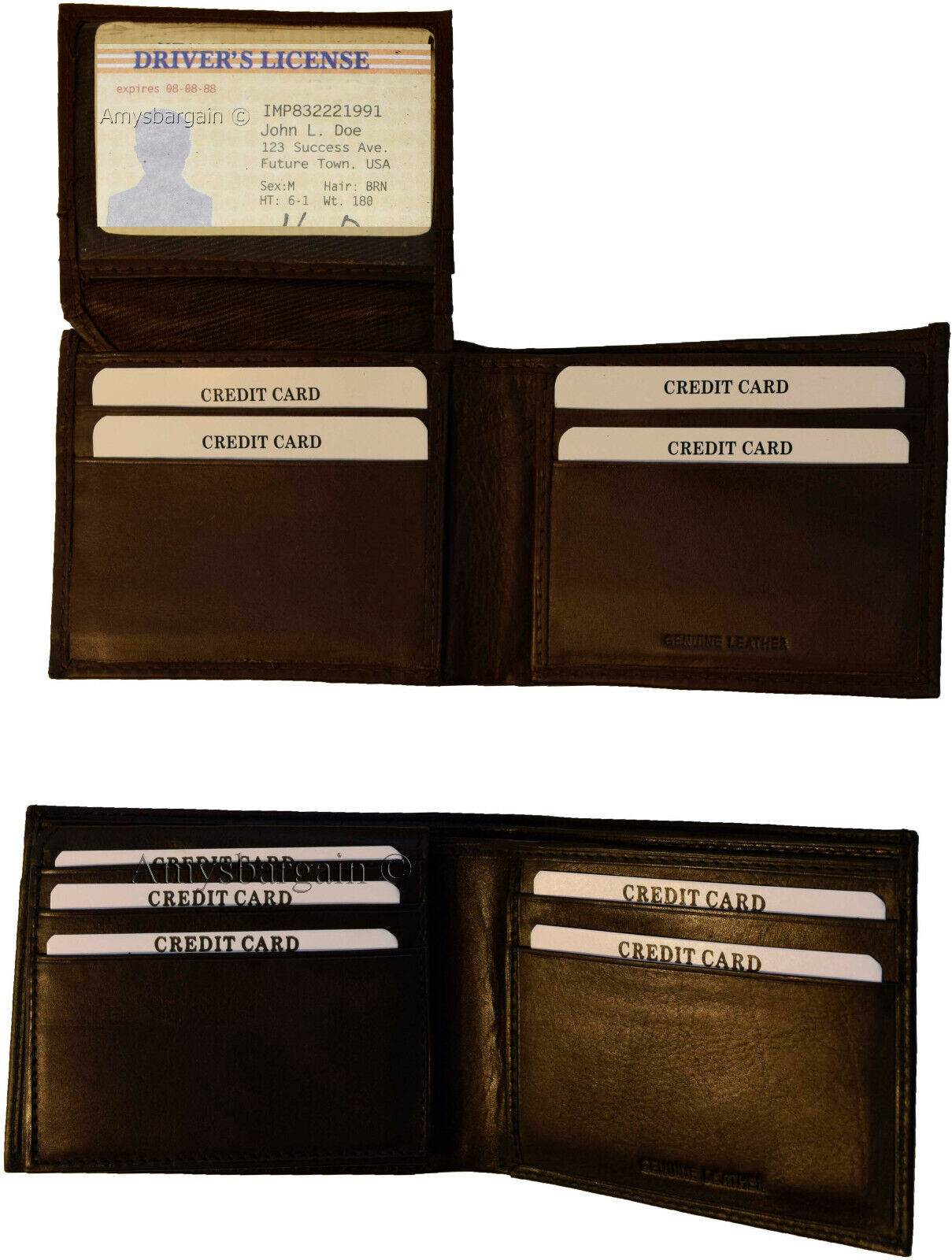 Man's quality leather wallet billfold man's wallet 6 credit card spaces w/ID new.Description:This is a very stylish extra soft and strong leather mans wallet with an easy-in-out ID case. It has 2 billfolds and 6 card slots. This wallet would make a great gift for that special someone that has it all, or treat your selves to its qualities.It has an easy in-and-out ID window, 6 card spaces and 2 lined bill fold pockets.Act now! it won't last!Item Details: