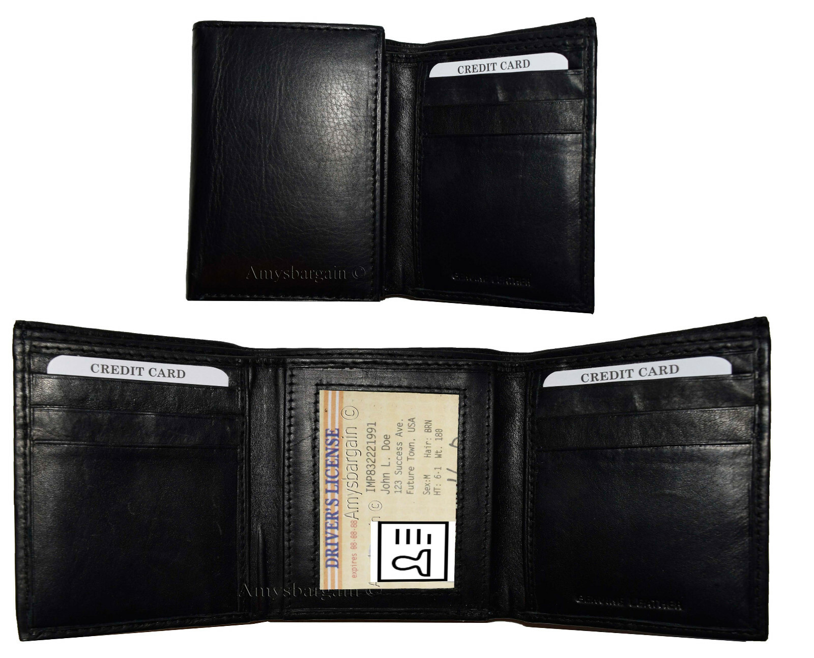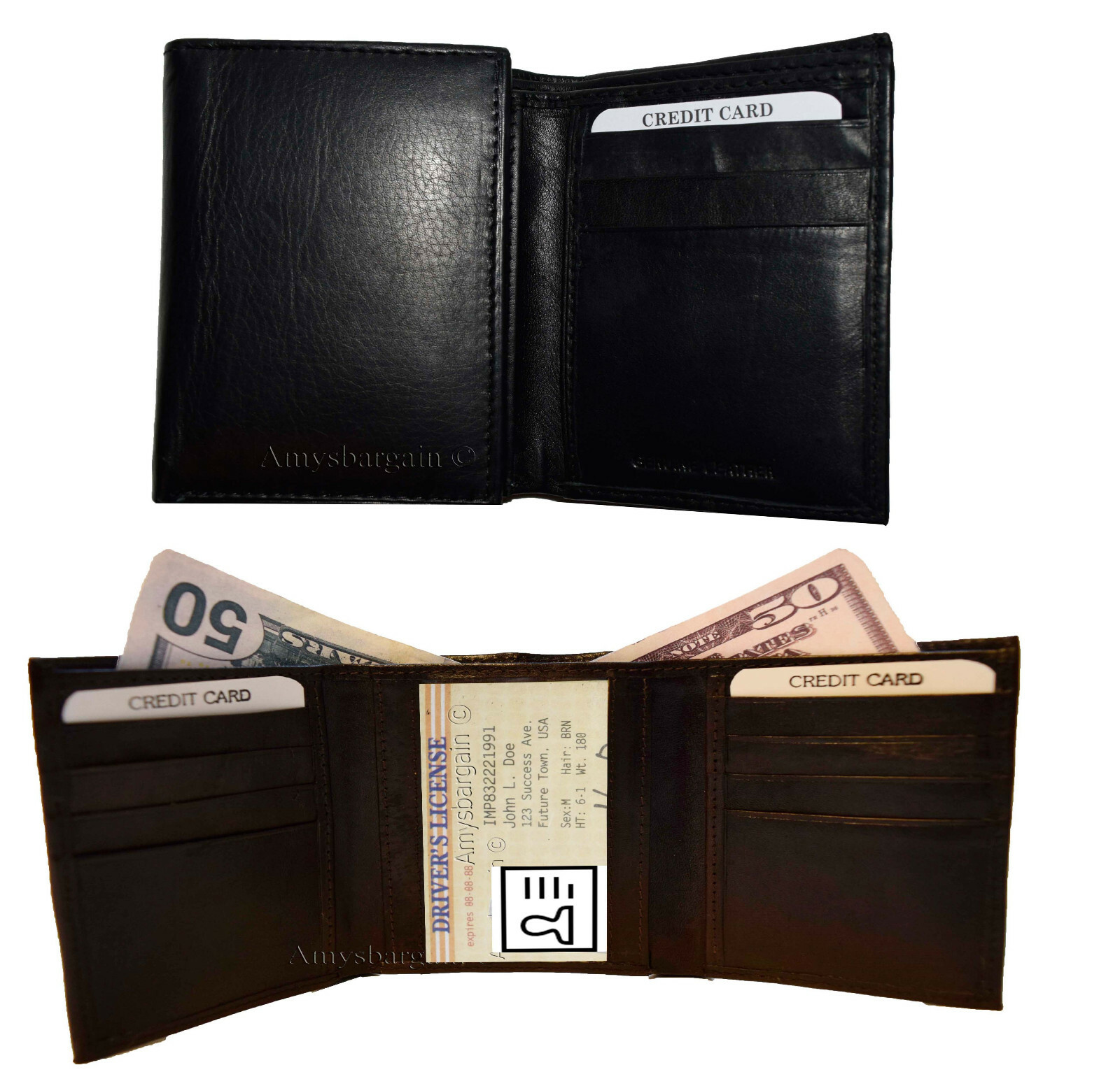 Man's wallet Buff Leather Trifold wallet 1 ID window 9 card 2 bill slots