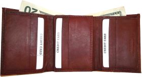 man's wallet leather trifold 12 credit card 2 bill slots black brown tan cognac.Description:Roman styled durable tri-fold leather man's wallet with a centerpiece, ID window and 2 suede lined billfold compartments. It would make a great gift!Item Details: