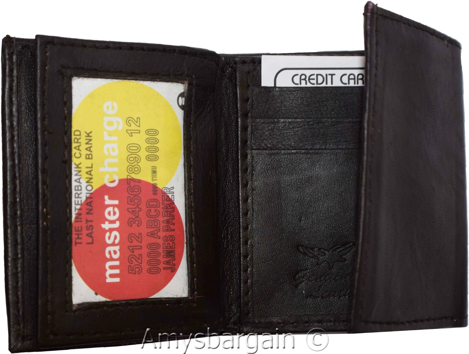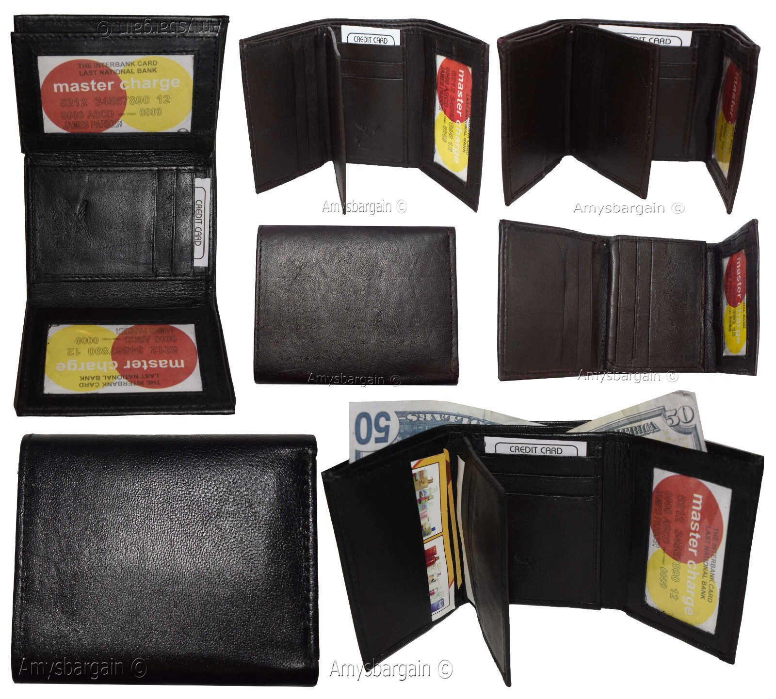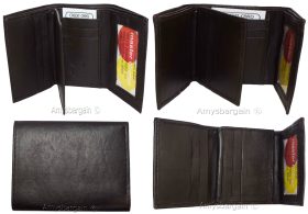 Man's wallet Tri-fold Leather 9 card spaces 2 ID windows 2 bill slots New wallet