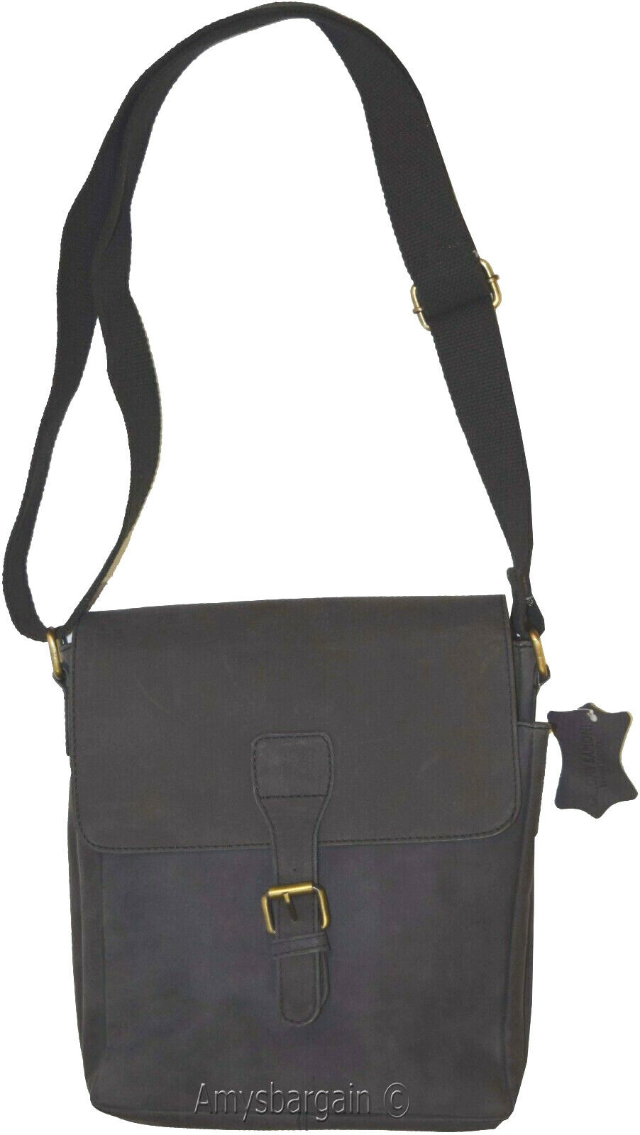 This Nubuck cowhide leather bag features a flap over with snap or buckle closure. One convenient snap colsure easy access rear pocket. It has an interior display for credit cards, pan and pencil, and a large sell phone pocket. It also has a 58" adjustable canvas sturdy shoulder strap.