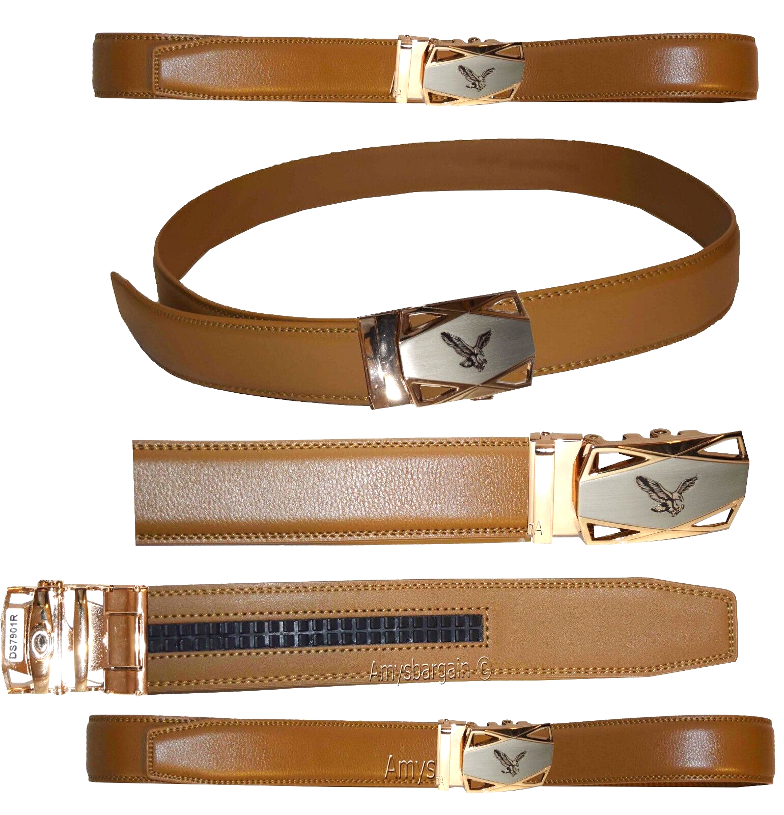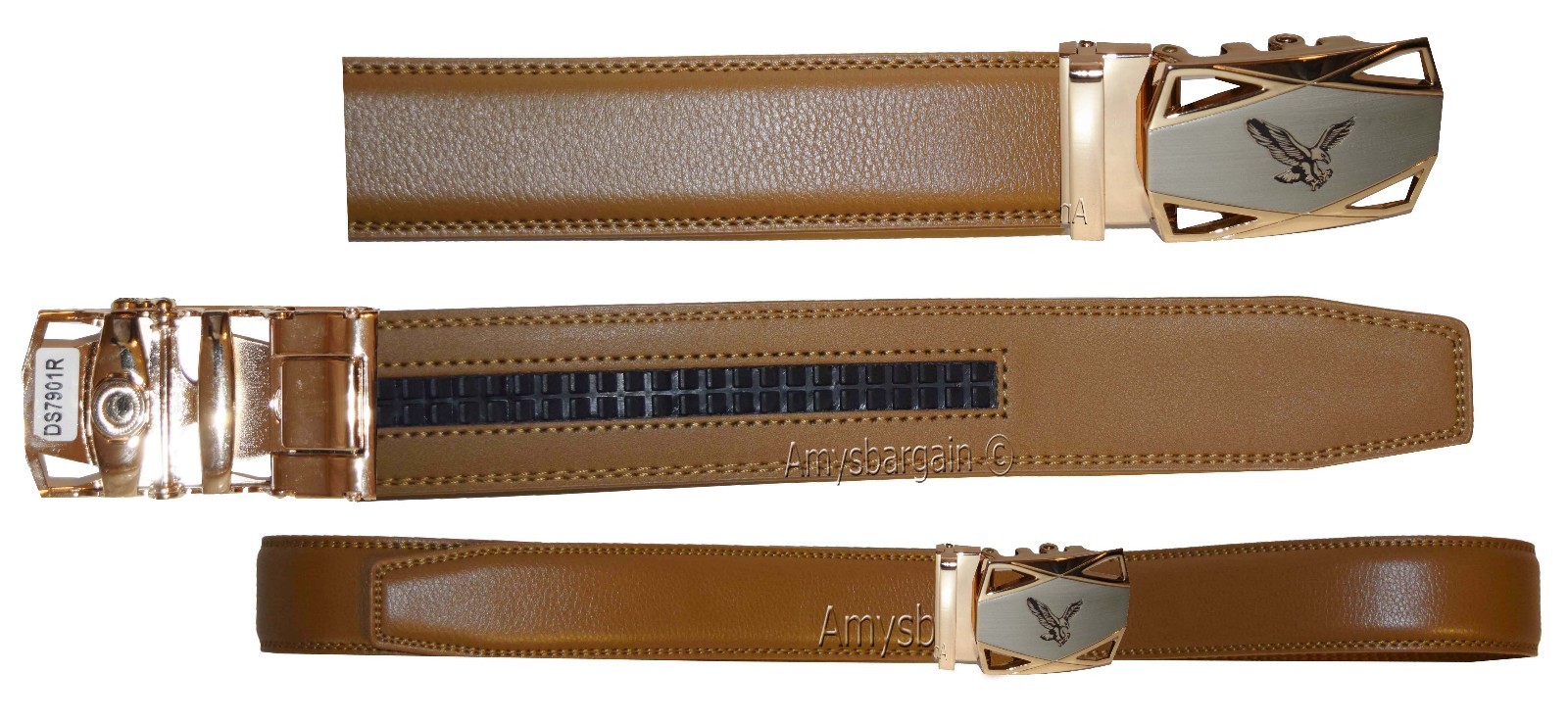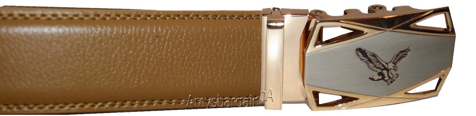 men's belt 36-inch leather dress belt click comfort automatic lock gold eagle.