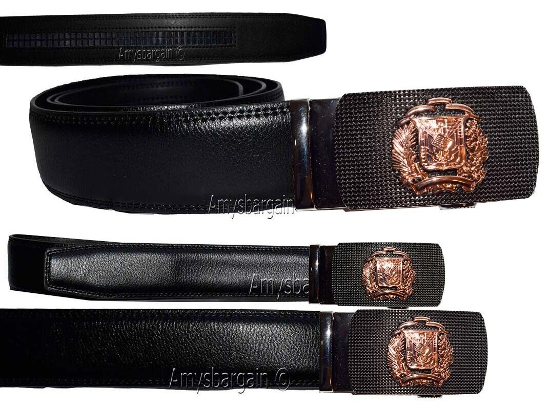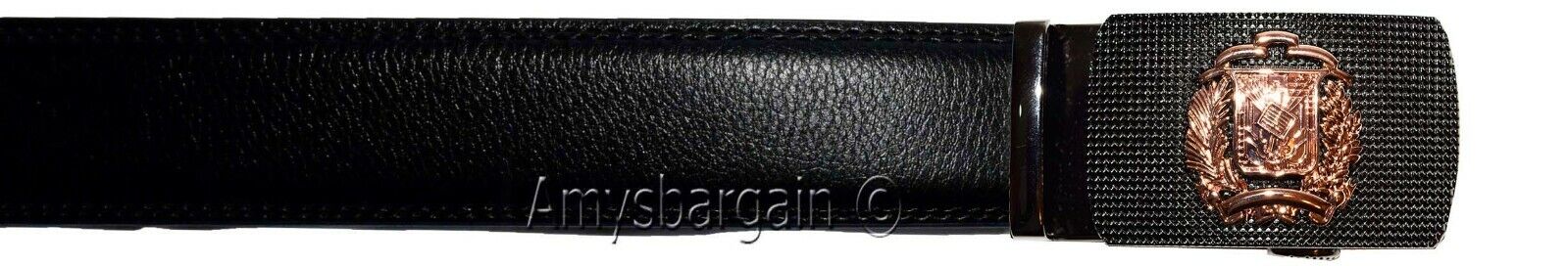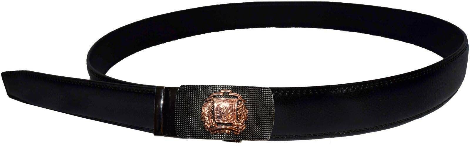leather belt automatic lock click comfort badge shield buckle up- 50".Description: