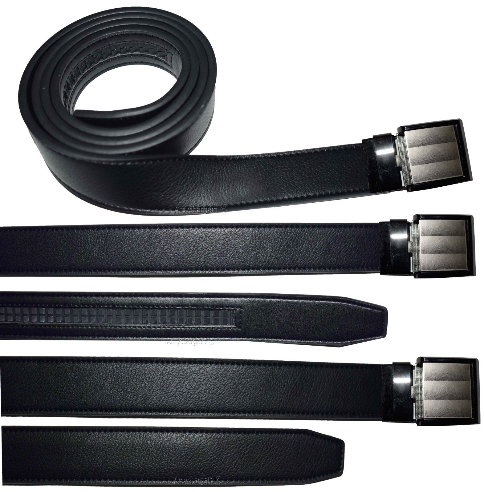 This is a new "Quick-Lock" all-in-one dress and casual belt. It is a and very fashionable men's leather belt. It is cut-able adjustable from 39 up to 43 inches. It has an easy on off auto-lock detachable metallic clip on buckle.