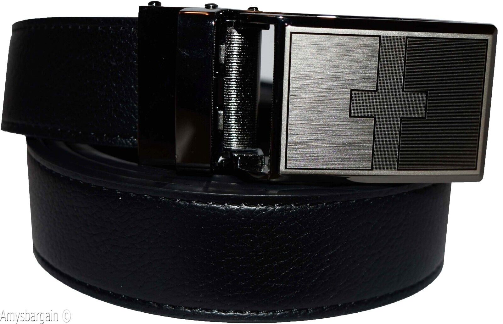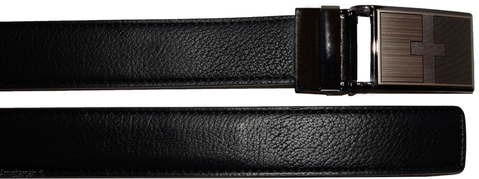 Men's belt leather dress Belt w/ auto Lock sliding buckle XL black belt BN.