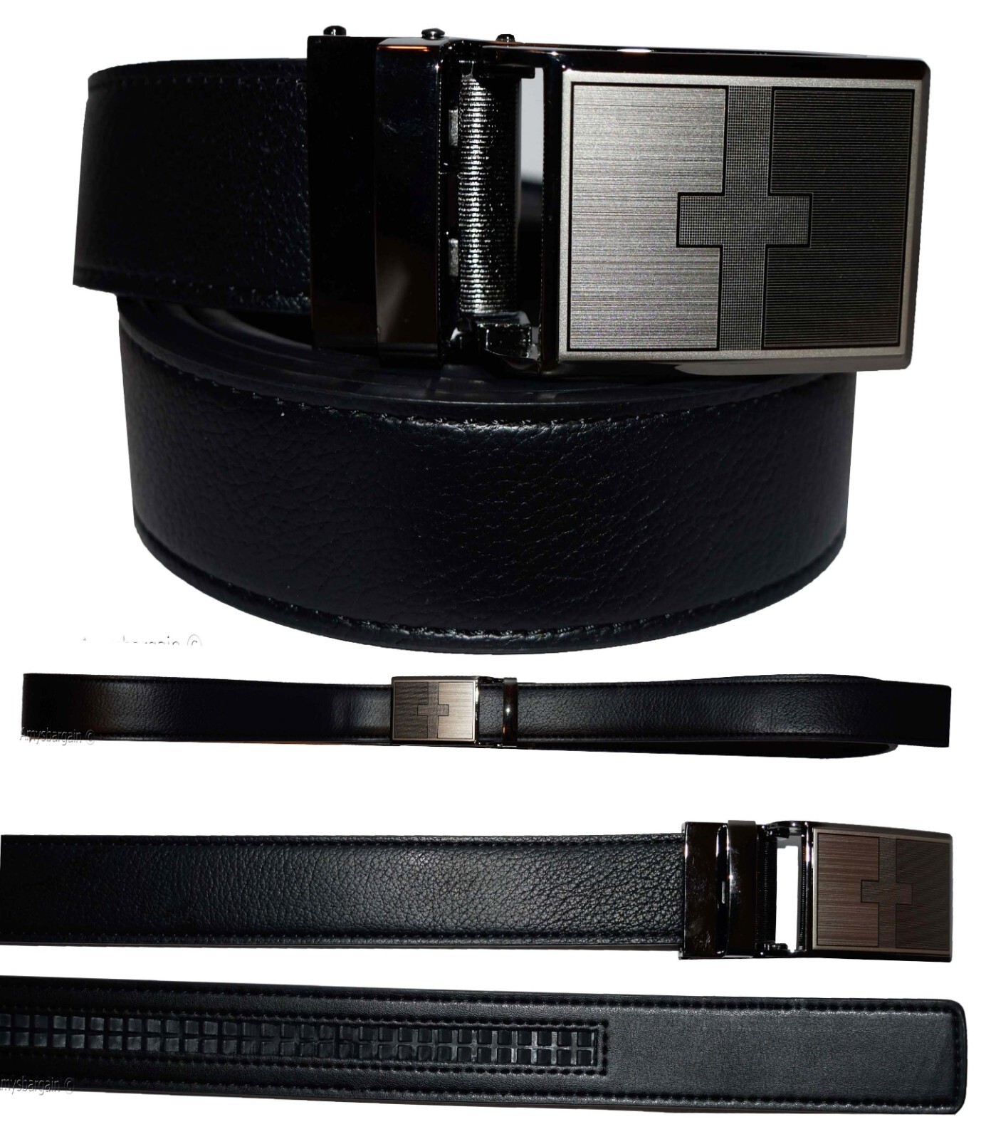 This is a new "Quick-Lock" all-in-one dress and casual belt. It is a and very fashionable men's leather belt. It is cut-able adjustable from 39 up to 43 inches. It has an easy on off auto-lock detachable metallic clip on buckle.