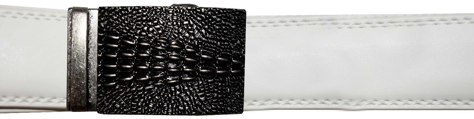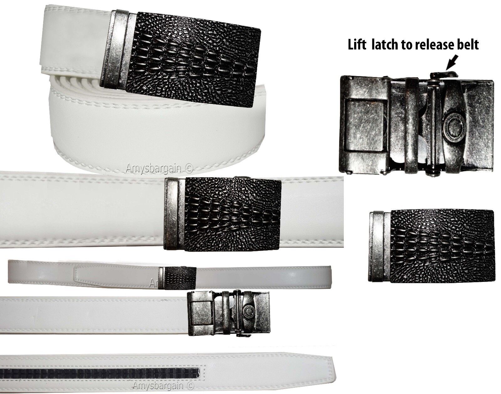 Men's Belt. length 30" Leather Dress Belt. Auto Lock Crocodile Skin Printed Buckle.Description:This is a new "Quick-Lock" all-in-one dress and casual belt. It is a fine quality and very fashion... read more