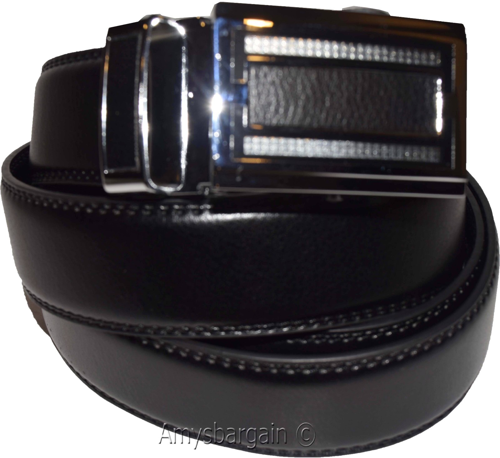 Men's Belt Up to 50" Leather Dress Belt Automtic Lock belt Quick lock belt New.Description:This belt is decorated with beautiful sparkling buckle.It is a "Quick-Lock" all-in-one dress and casual belt.This is a new "Quick-Lock" all-in-one dress and casual belt. It is a and very fashionable men's leather belt. It is cut-able and adjustable. It has an easy-on-off auto-lock detachable metallic clip on buckle.Act now it won't last!Item Details: