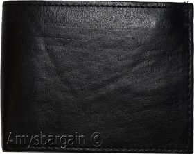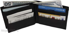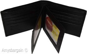 Men's Bifold Black wallet genuine Leather 12 credit card 3 ID 2 Bill pockets.