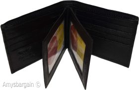 This soft genuine leather Bi-fold men's wallet offers 12 credit card spaces. 2 billfold pockets and 3 ID windows. It also has a 3rd zip billfold for bills or coins. It would make a great gift item, or treat yourselves to it.