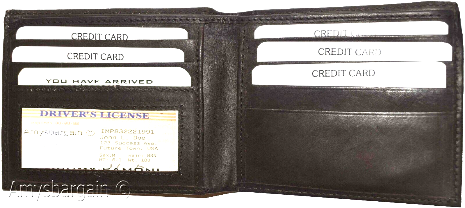 ·What's included? leather wallet. Bills, cards and other "Demo Items" are not included.Re-order number: 4745CD25.Manufacturers Suggested Retail Price (MSRP) $19.95 each.Buy it now it won't last!