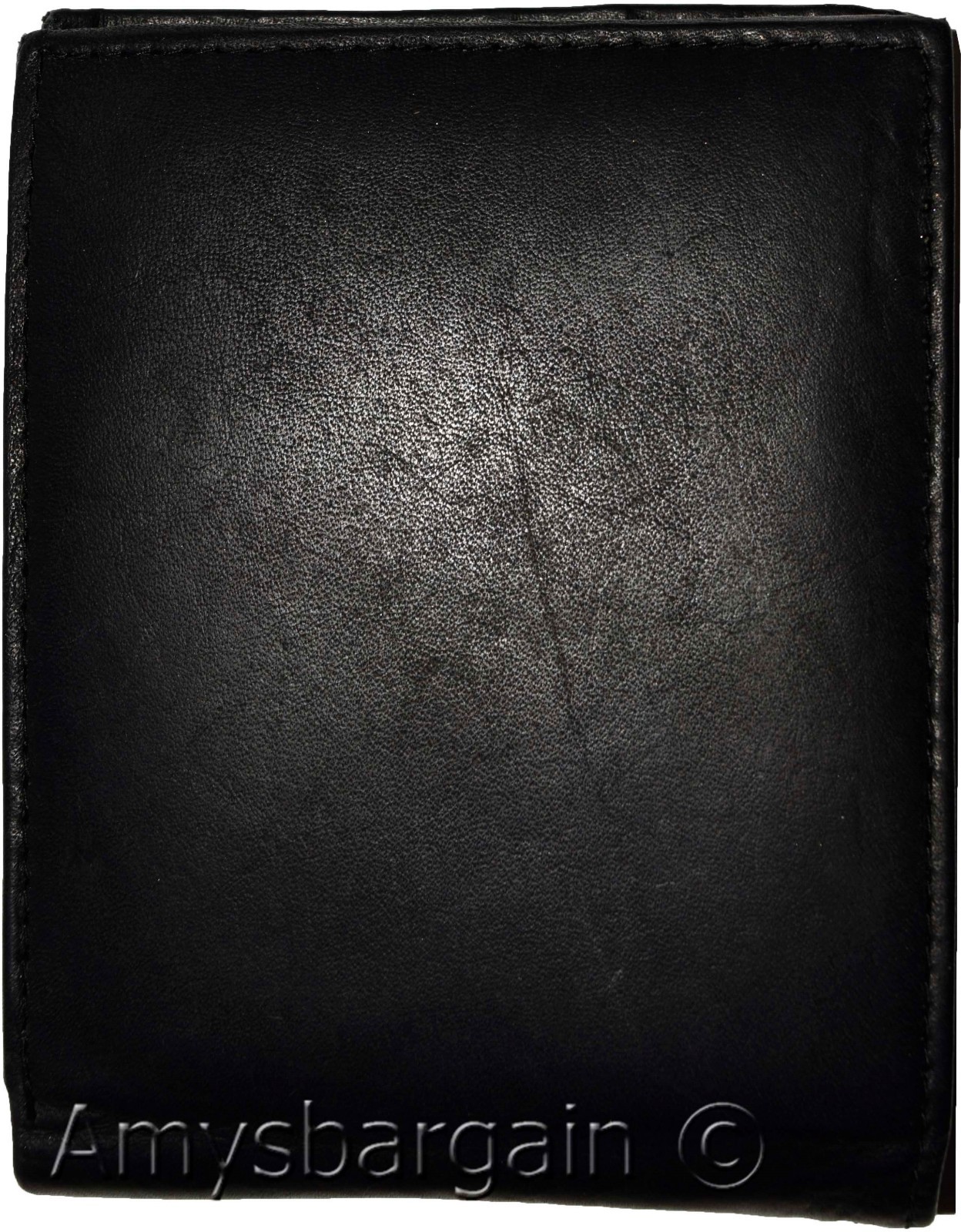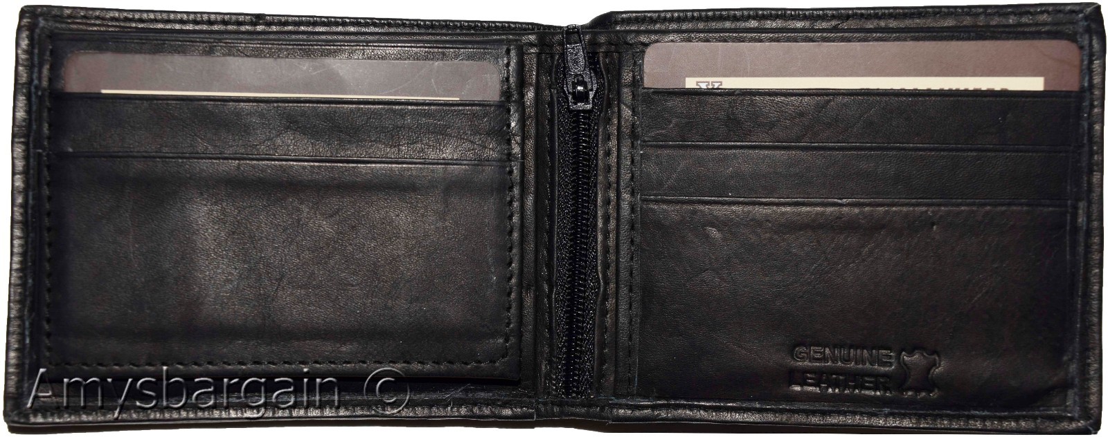 Men's Bifold Genuine Leather Wallet Black Wallet 2 Bill slots zip coin pocket.