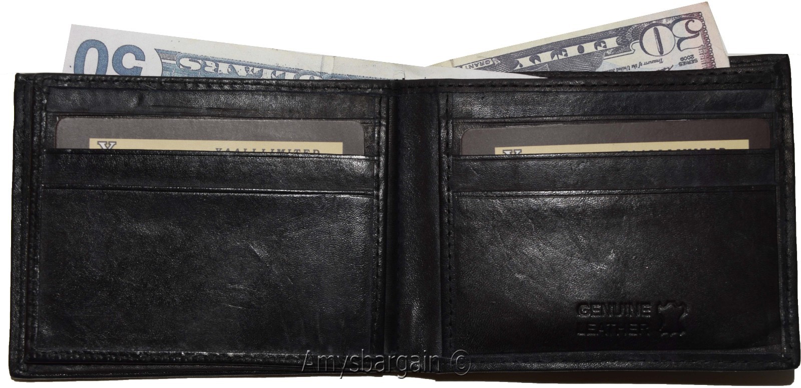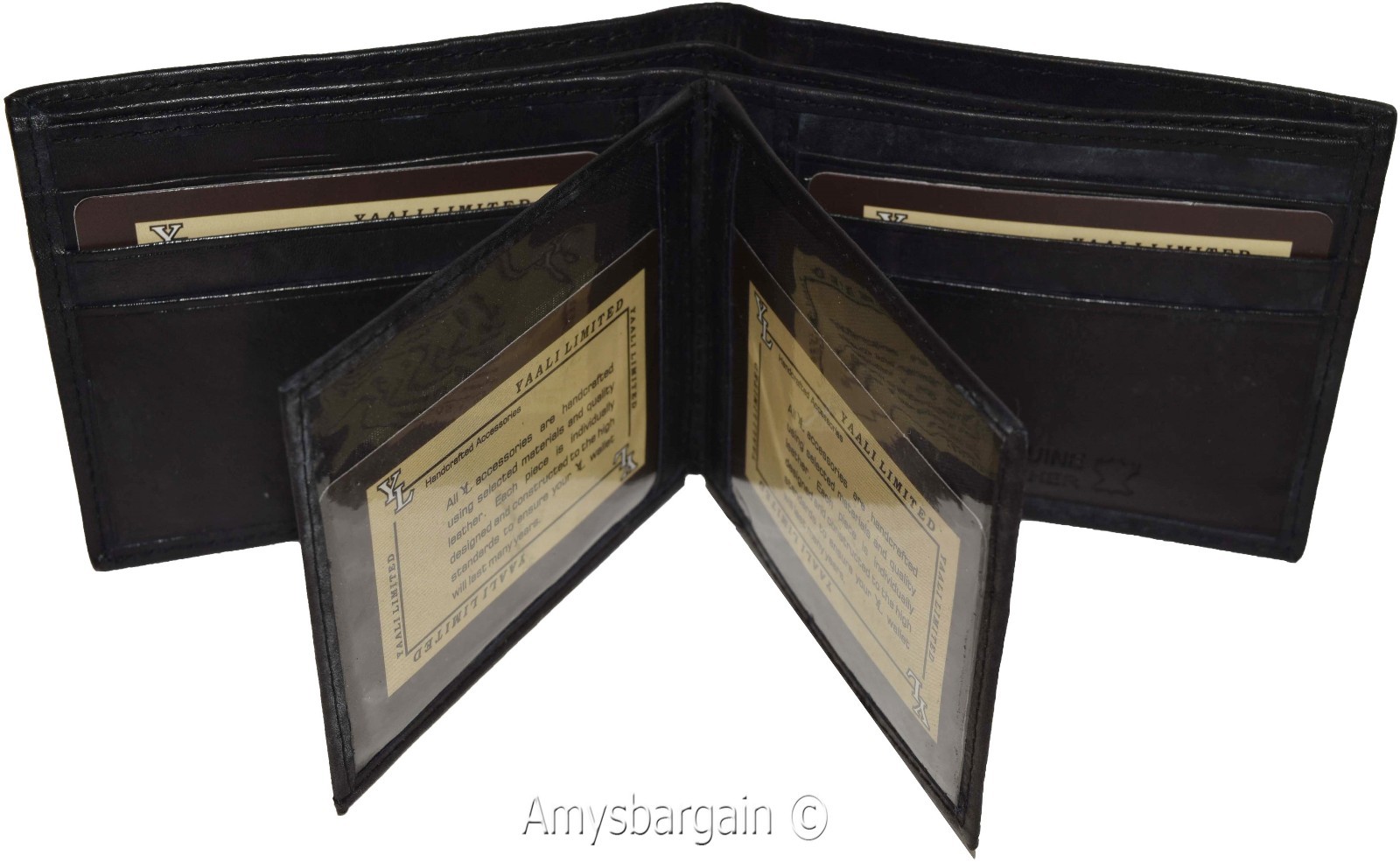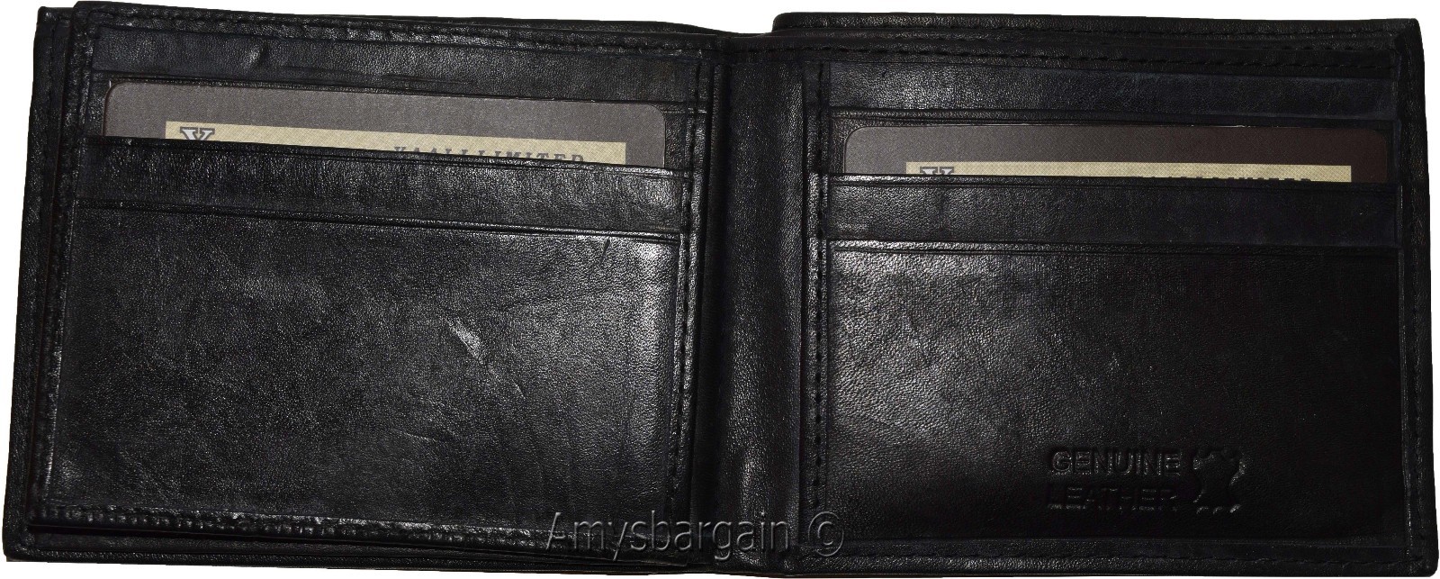 Men's Bifold leather wallet, 2 center pieces 9 card 3 IDs Genuine leather wallet.