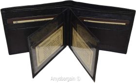 Description:This man's wallet offers, 2 built-in center pieces for extra space, 3 ID windows for convenience, 9 card slots and more…This wallet would make a great gift for your special someone, or, treat yourselves to its and sleekness.Fact: Suede or leather lined wallets last twice as long as fabric lined wallet.This wallet is suede lined.Act now!Item Details: