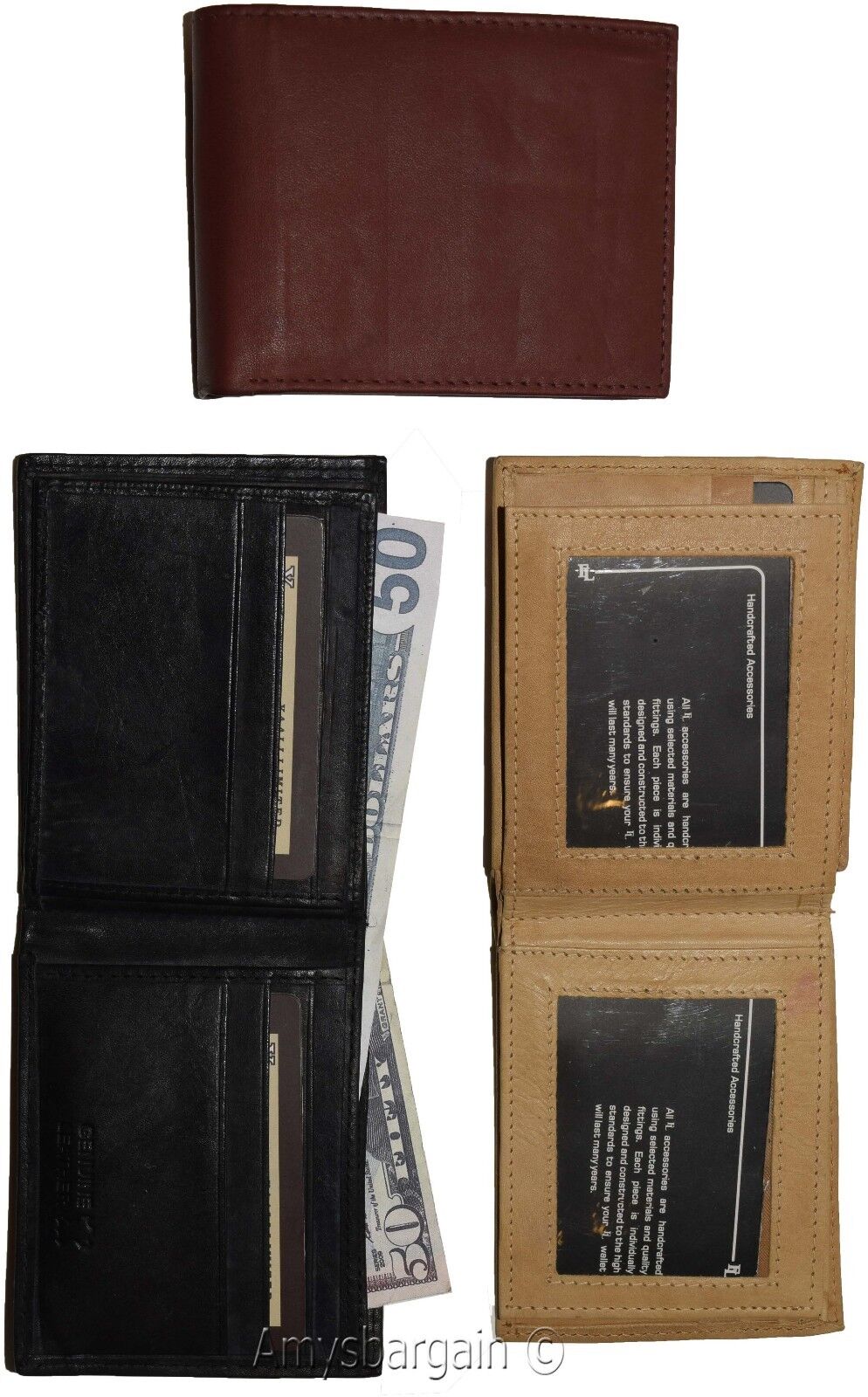Men's Bifold leather wallet, 2 center pieces 9 card 3 IDs Genuine leather wallet.