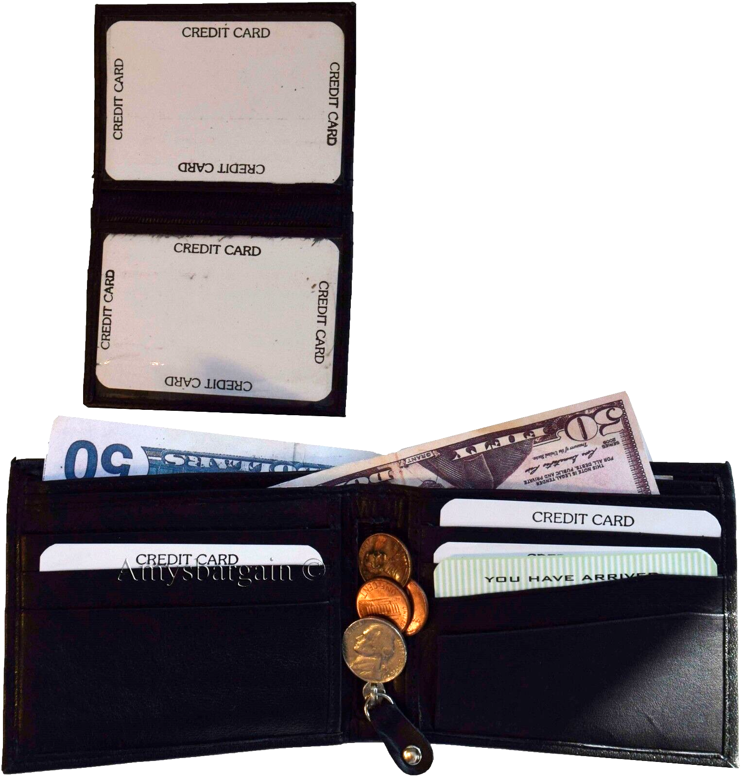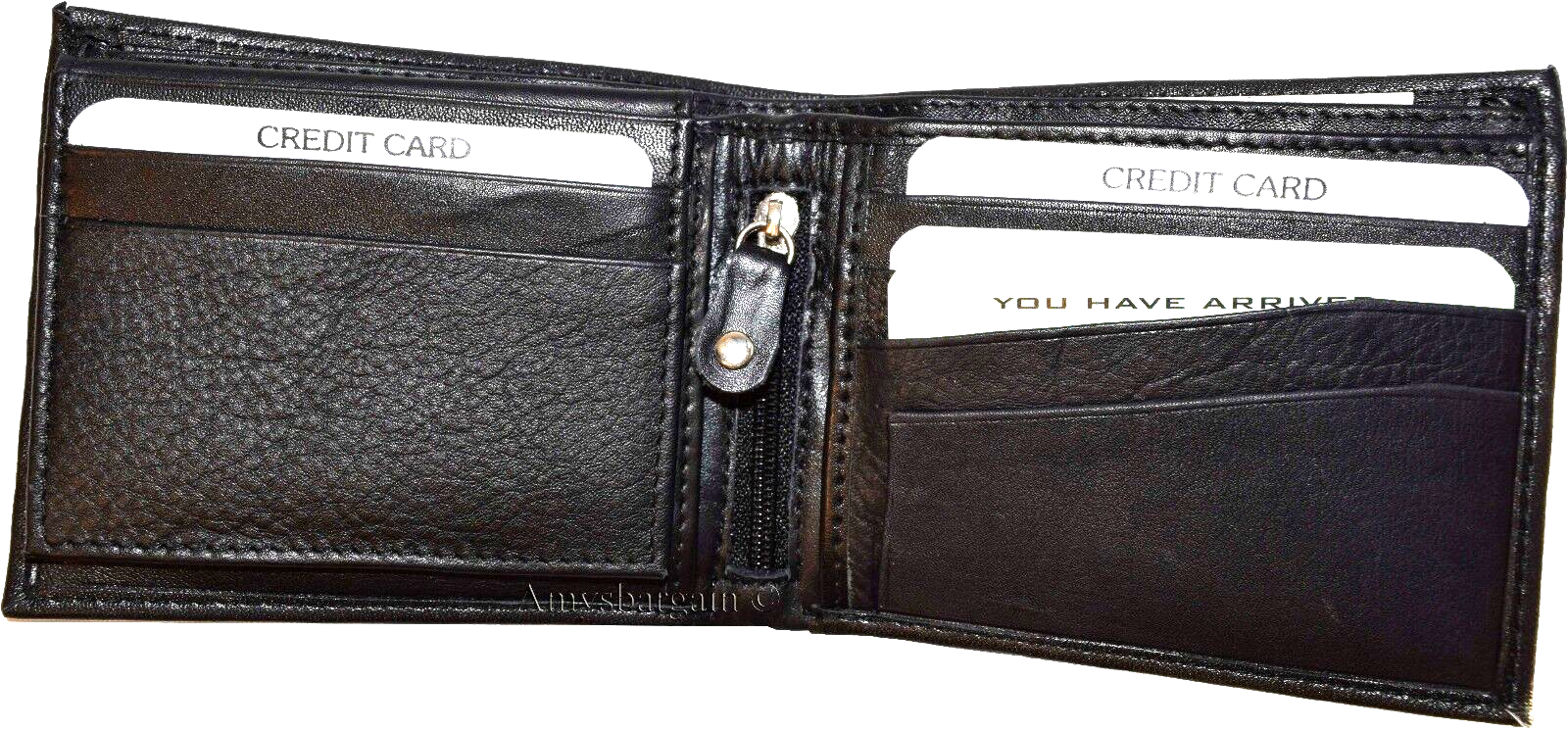 Men's Bifold Leather wallet Black Genuine leather Wallet, 3 billfold Zip case BN.Description:This is a very stylish extra soft and strong leather men's unbranded wallet with 2 detachable ID cases. It has a zip change purse, 2 billfolds, 1 hidden extra bill fold and 10 card slots. This wallet would make a great gift idea, or, treat yourselves to its qualities.It has 2 ID windows, 10 card spaces and 3 billfold pockets.Act now! it won't last!Item Details: