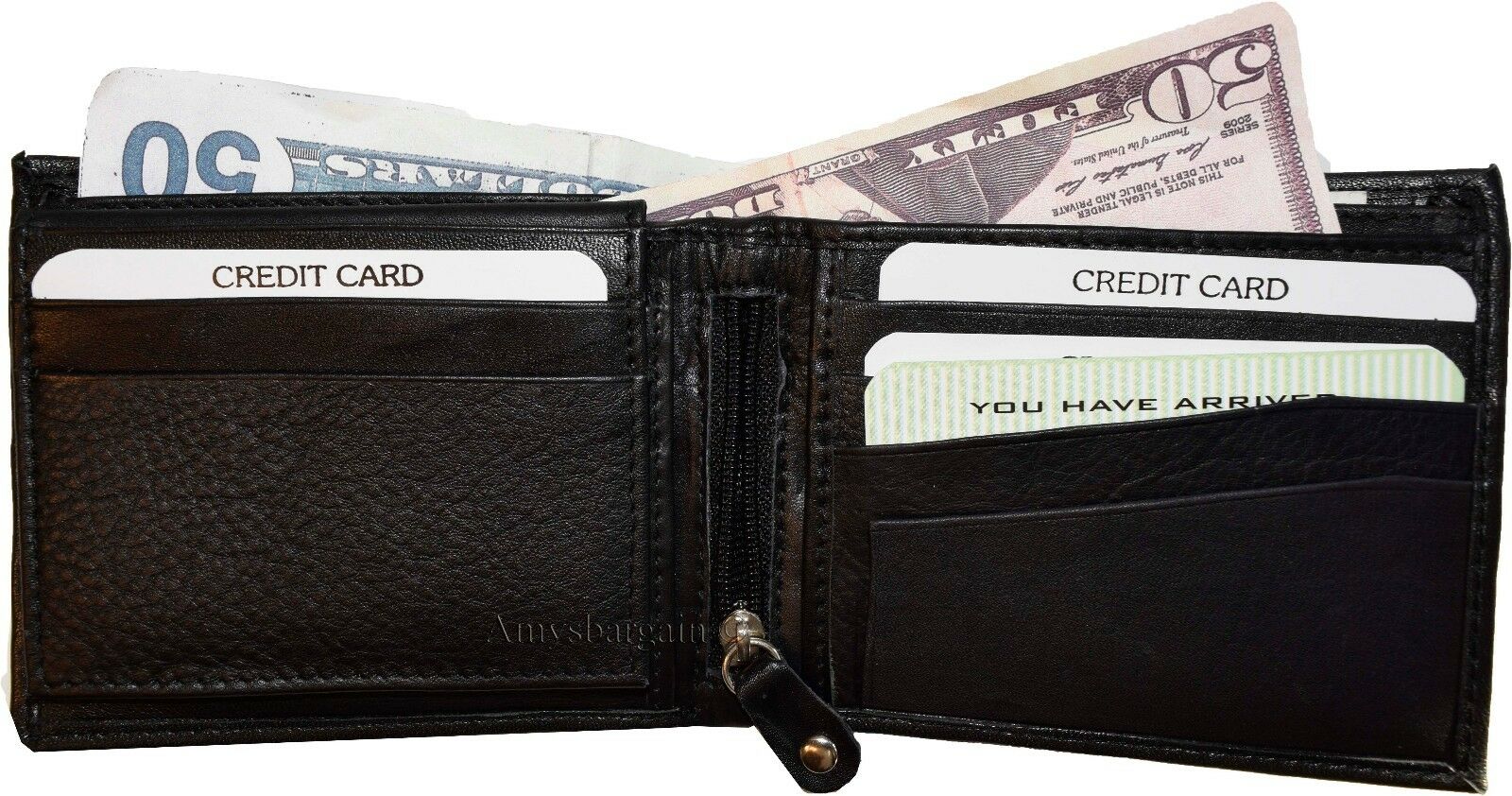 Men's Bifold Leather wallet Black Genuine leather Wallet, 3 billfold Zip case BN.Description:This is a very stylish extra soft and strong leather men's unbranded wallet with 2 detachable ID cases. It has a zip change purse, 2 billfolds, 1 hidden extra bill fold and 10 card slots. This wallet would make a great gift idea, or, treat yourselves to its qualities.It has 2 ID windows, 10 card spaces and 3 billfold pockets.Act now! it won't last!Item Details: