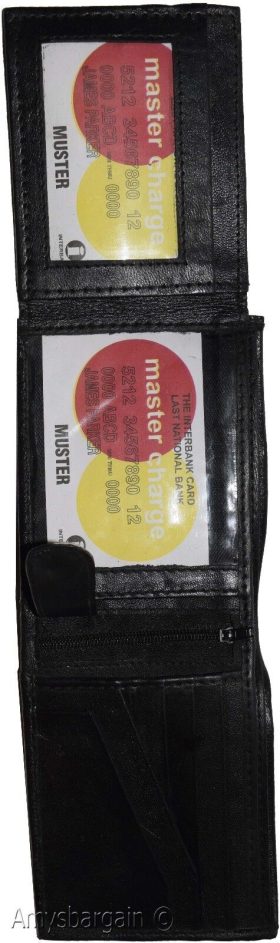 Description:This soft genuine leather Bi-fold men's wallet offers 12 credit card spaces. 2 billfold pockets. It also has a 3rd zip billfold for bills or coins and 2 transparent ID windows. It would make a great gift item, or treat yourselves to it.Buy it now! it will not last at this price!Item Details:· Item: Leather Men's Bifold wallet.· Material: genuine leather.· 2 Billfold pockets.· 3rd zip bill fold for bills or coins.· 1 Zip coin case.· 12 Credit card spaces.· 2 Under-card hidden card spaces.· Dimensions: (Closed): 4.25 X 3.40 inches.· Color: Black. View images please.·What's included? leather wallet. Bills, cards and other "Demo Items" are not included.Re-order number: 794Y30.Manufacturers Suggested Retail Price (MSRP) $24.95 each.Buy it now it won't last!
